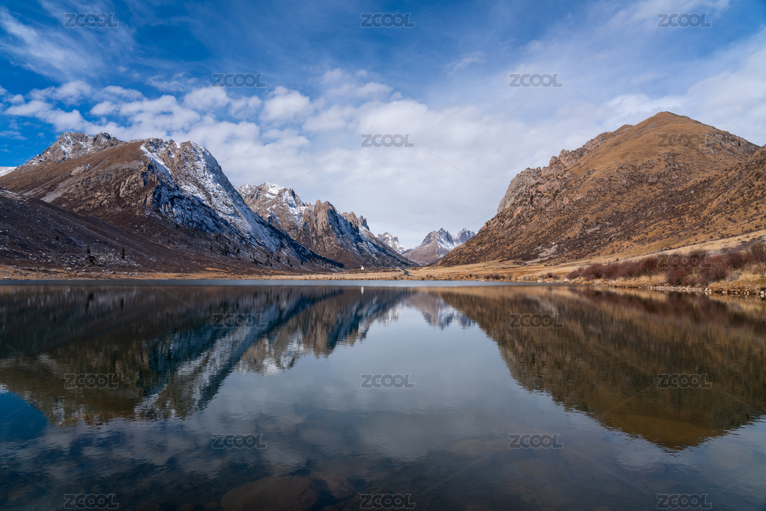 中国四川甘孜藏族自治州斯丁措雪山湖泊蓝天