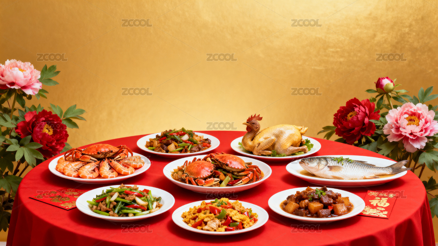 美味的中式菜品组合套餐,过年的氛围画面