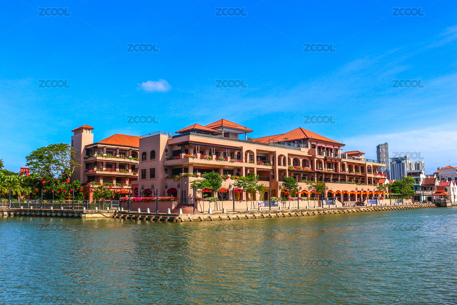 马来西亚世界文化遗产核心区马六甲河早晨河畔风光