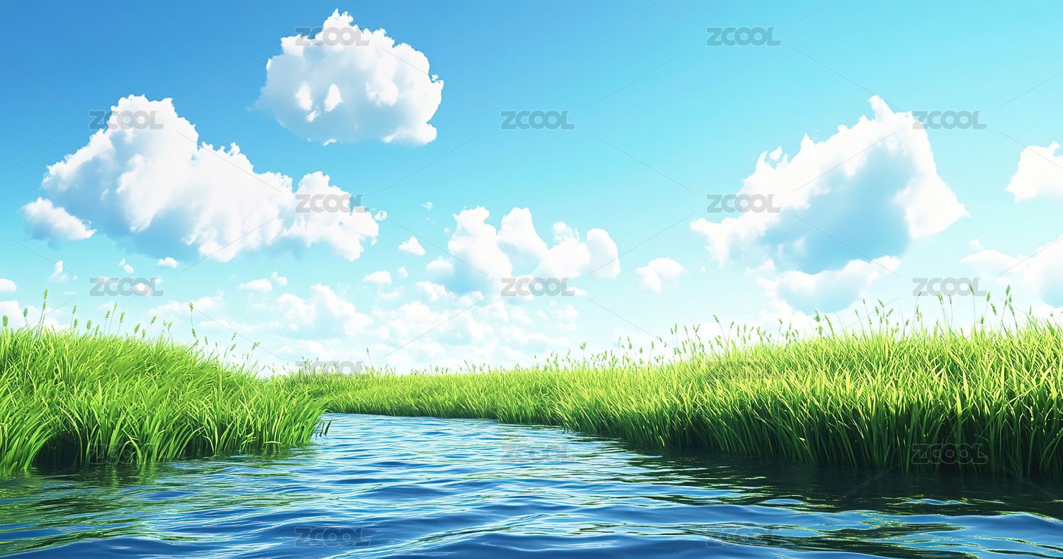 3D,插画,清新,抽象,背景,夏天,夏季,多云,天空,户外