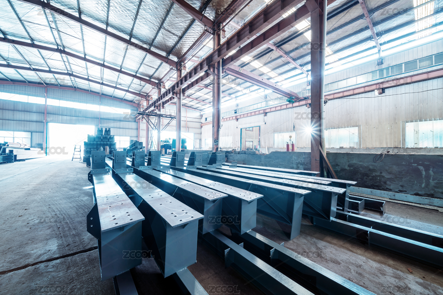 钢构厂里的钢材,工业概念图。