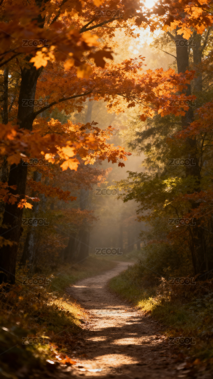 秋日林间小径阳光穿透