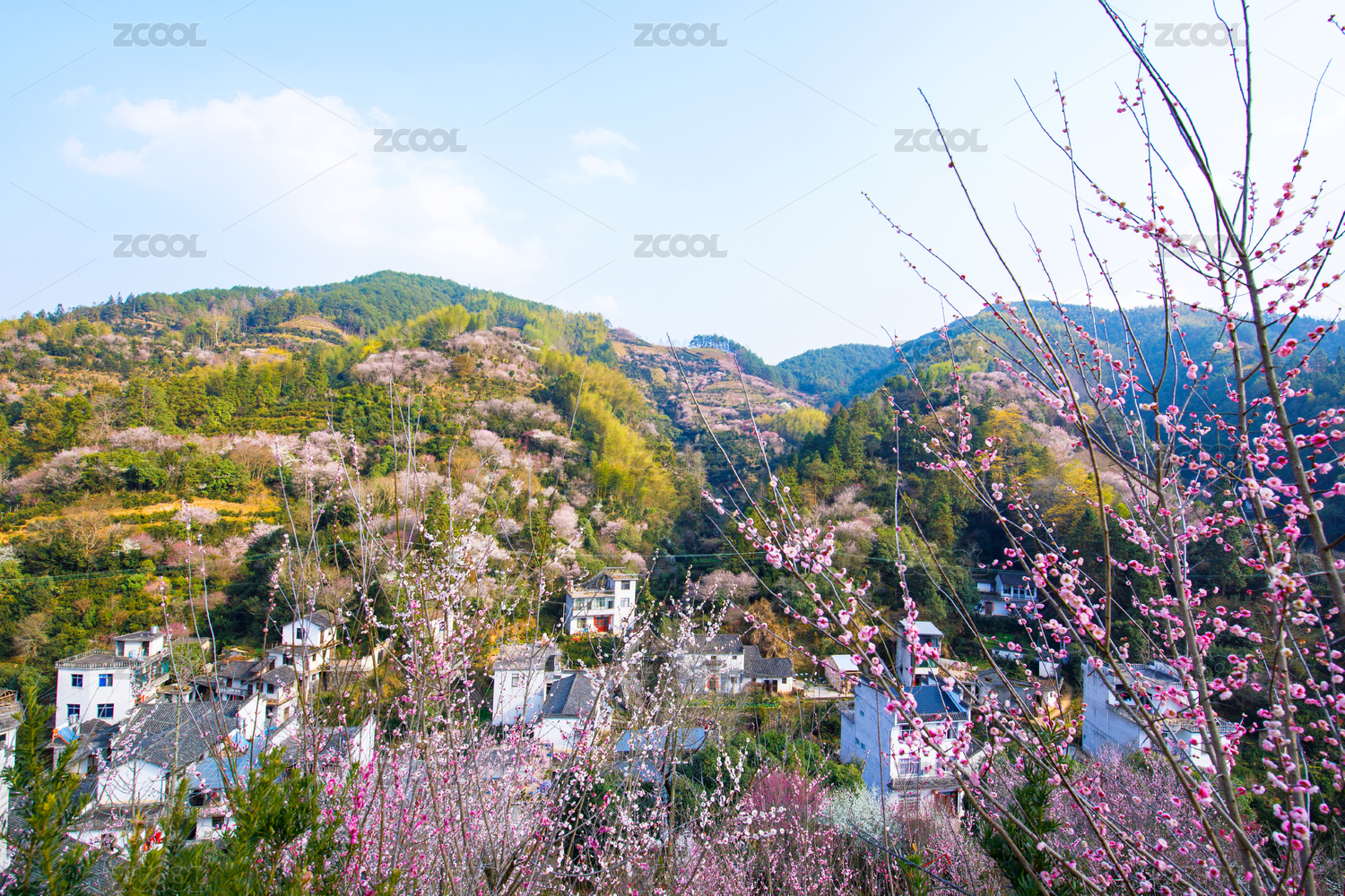 中国安徽省黄山市歙县石潭湖山春季油菜风光