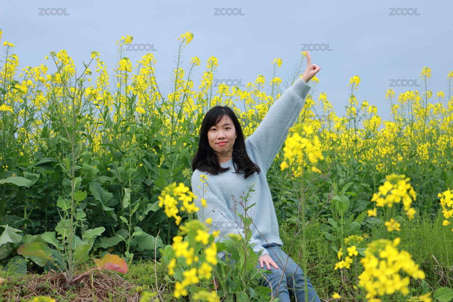 春天油菜花田里的中国女生