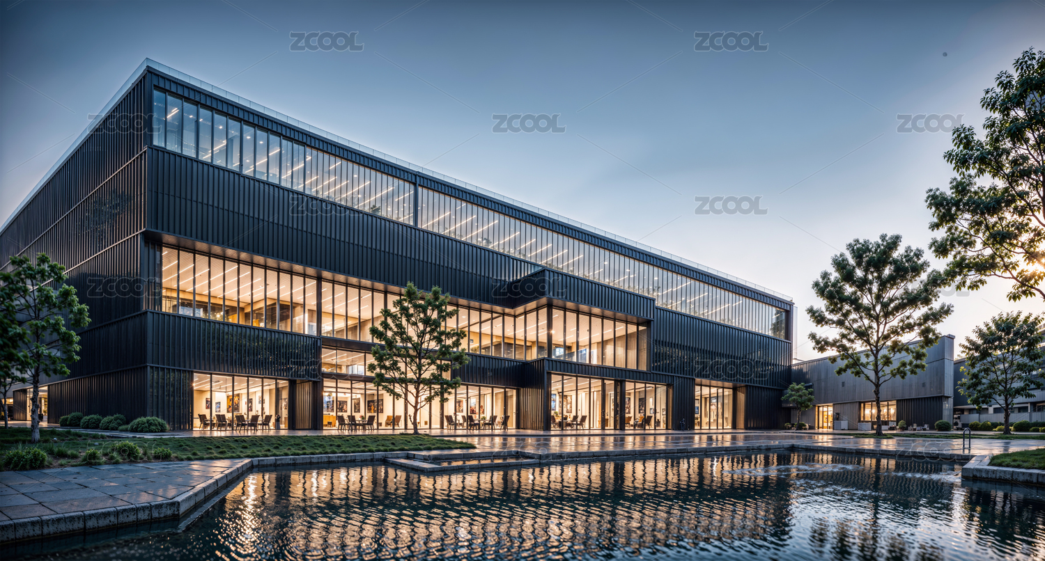 工业风现代建筑玻璃灯光几何场景背景