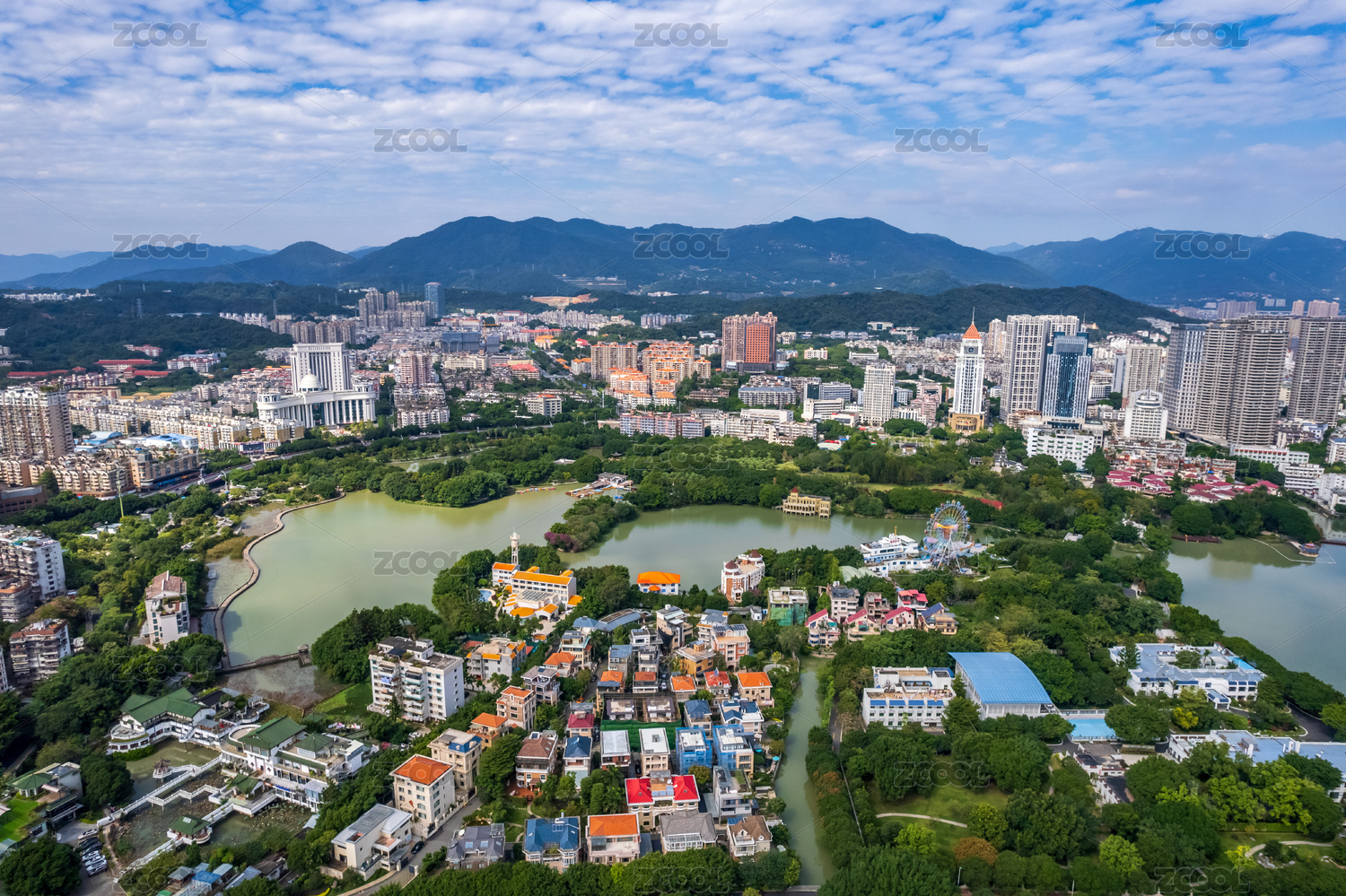中国福建福州西湖航拍风景图