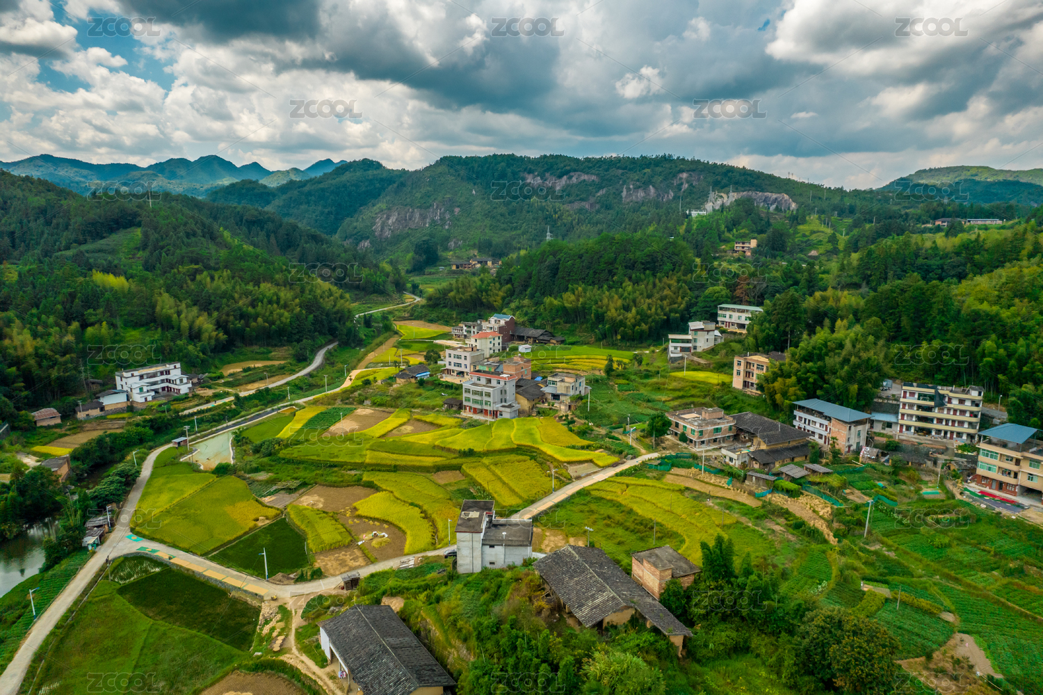 中国福建省闽侯县马墘村秋天稻田航拍风光