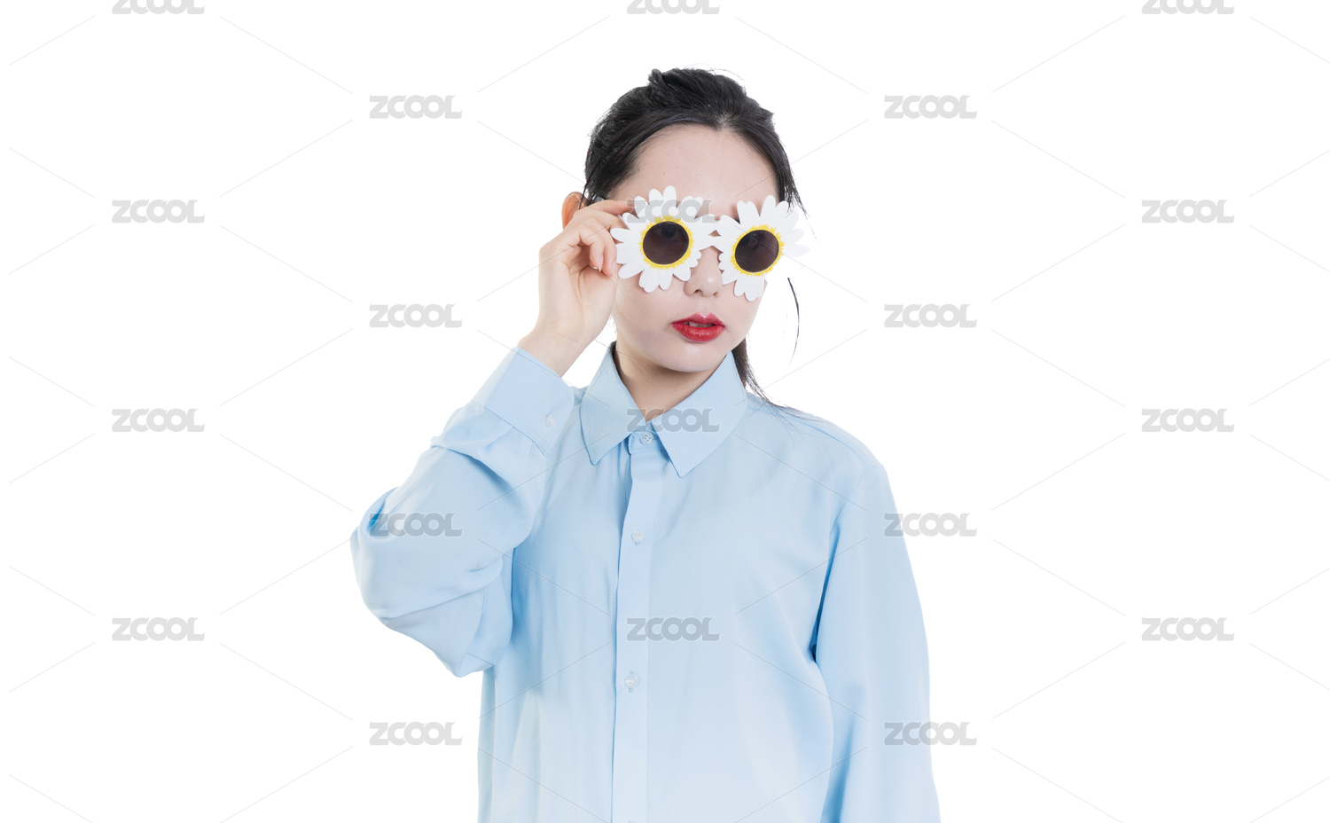 穿蓝色衬衣戴着太阳镜的