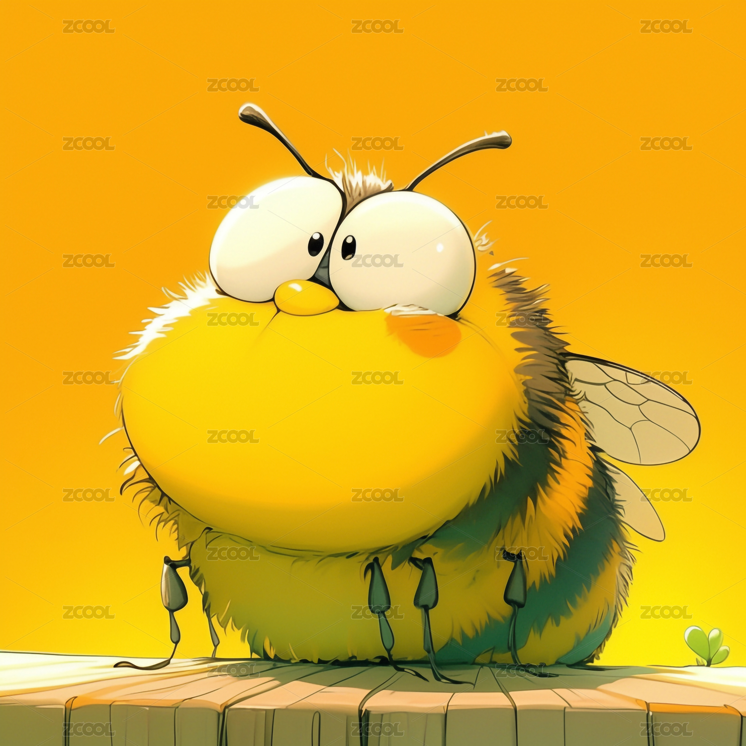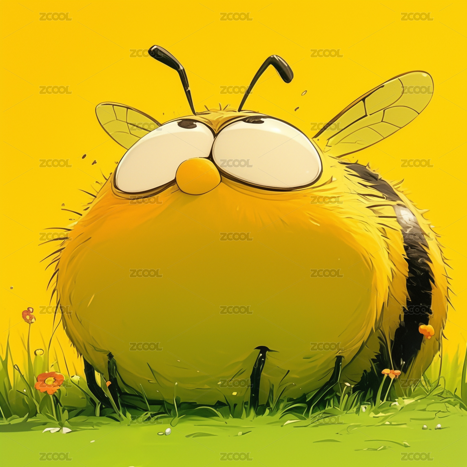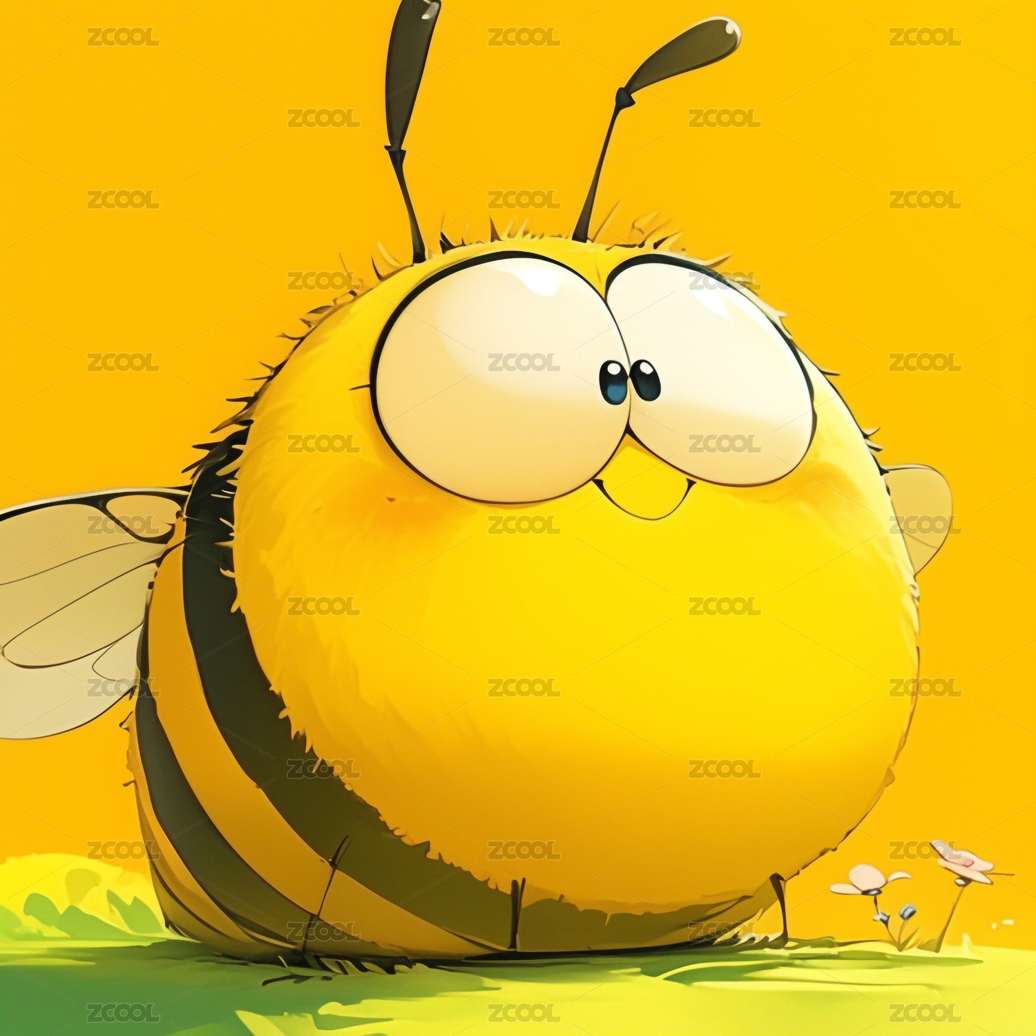 一只圆滚滚的卡通大眼睛蜜蜂头像插画