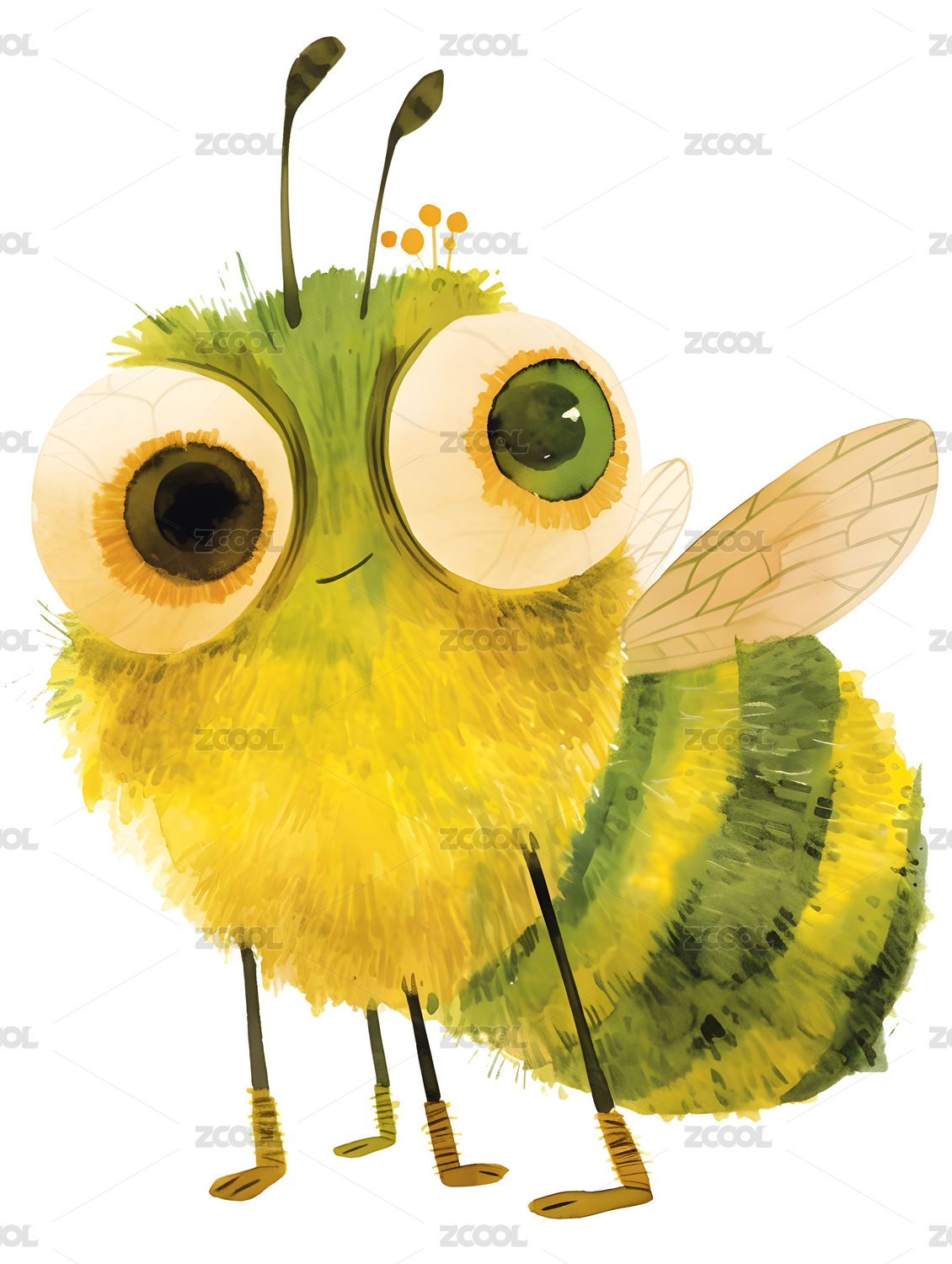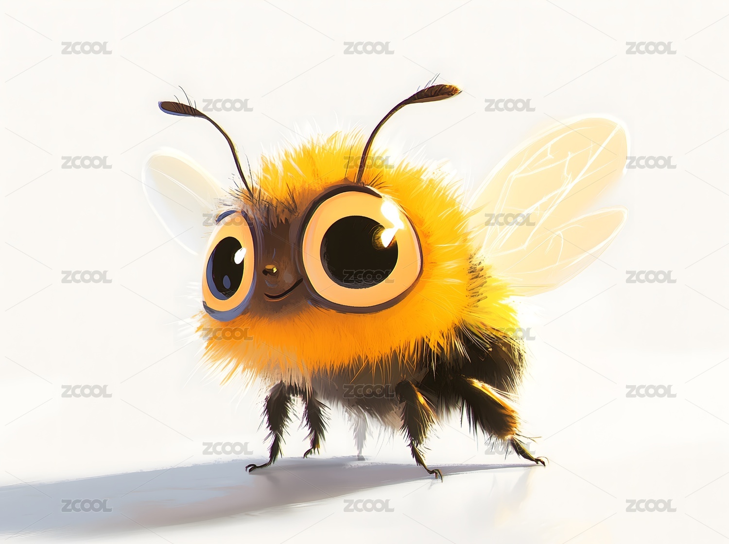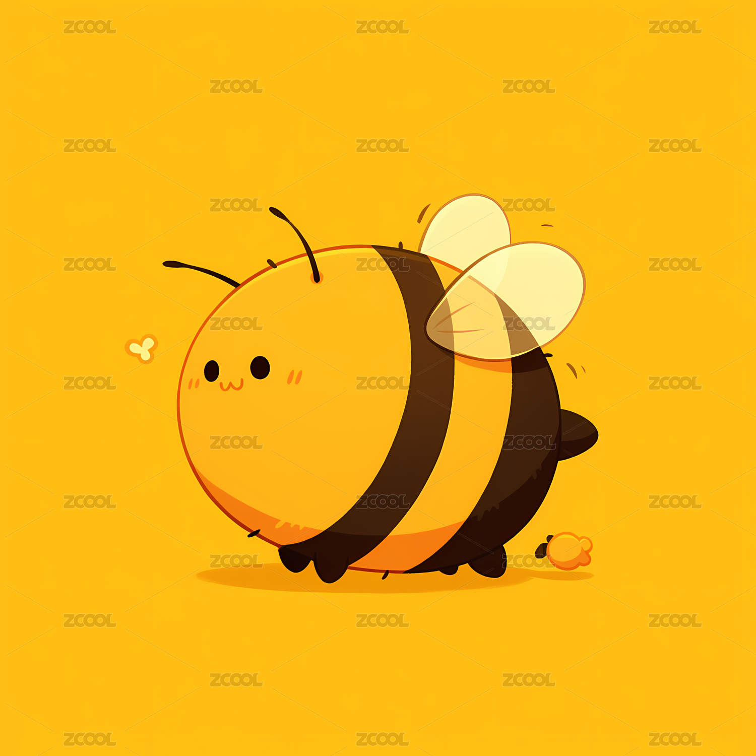 一只圆滚滚的卡通大眼睛蜜蜂头像插画
