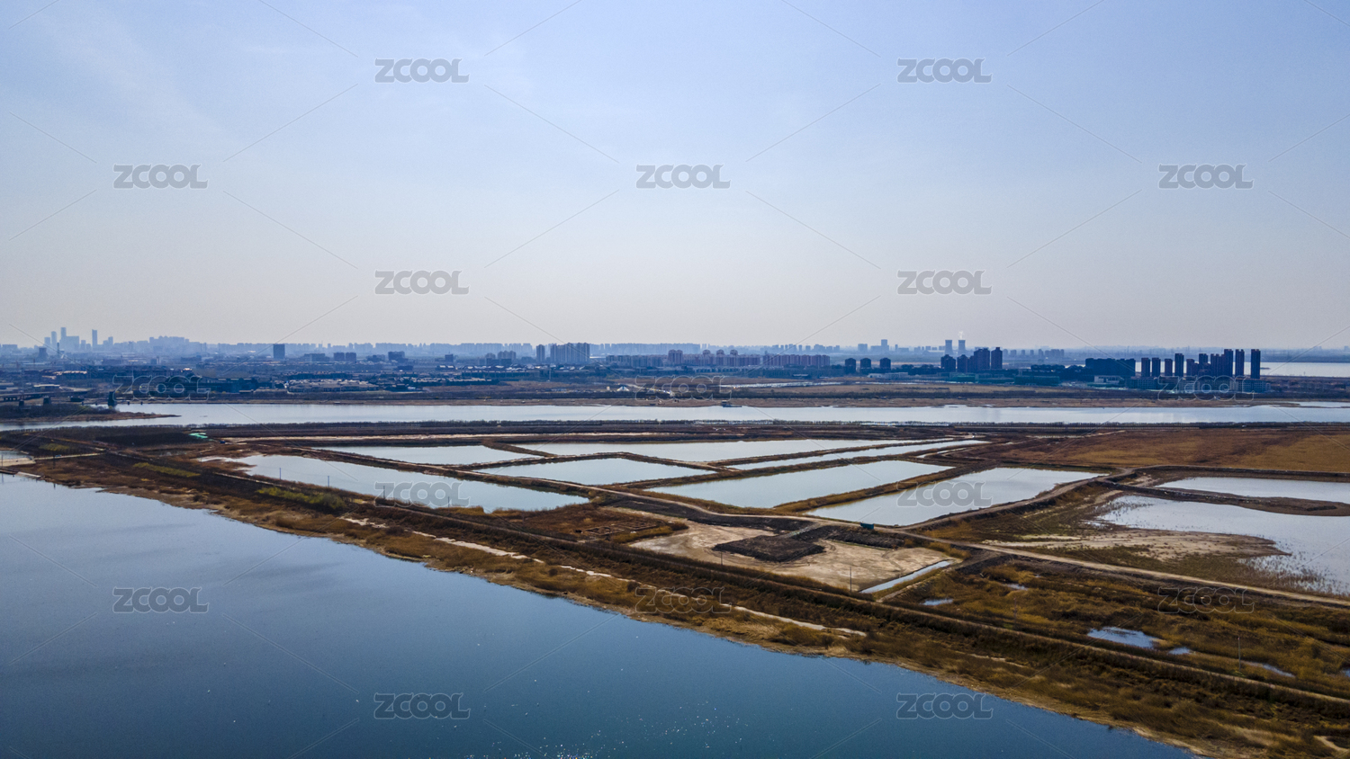 天津滨海新区渤海湾盐碱地航拍俯视图