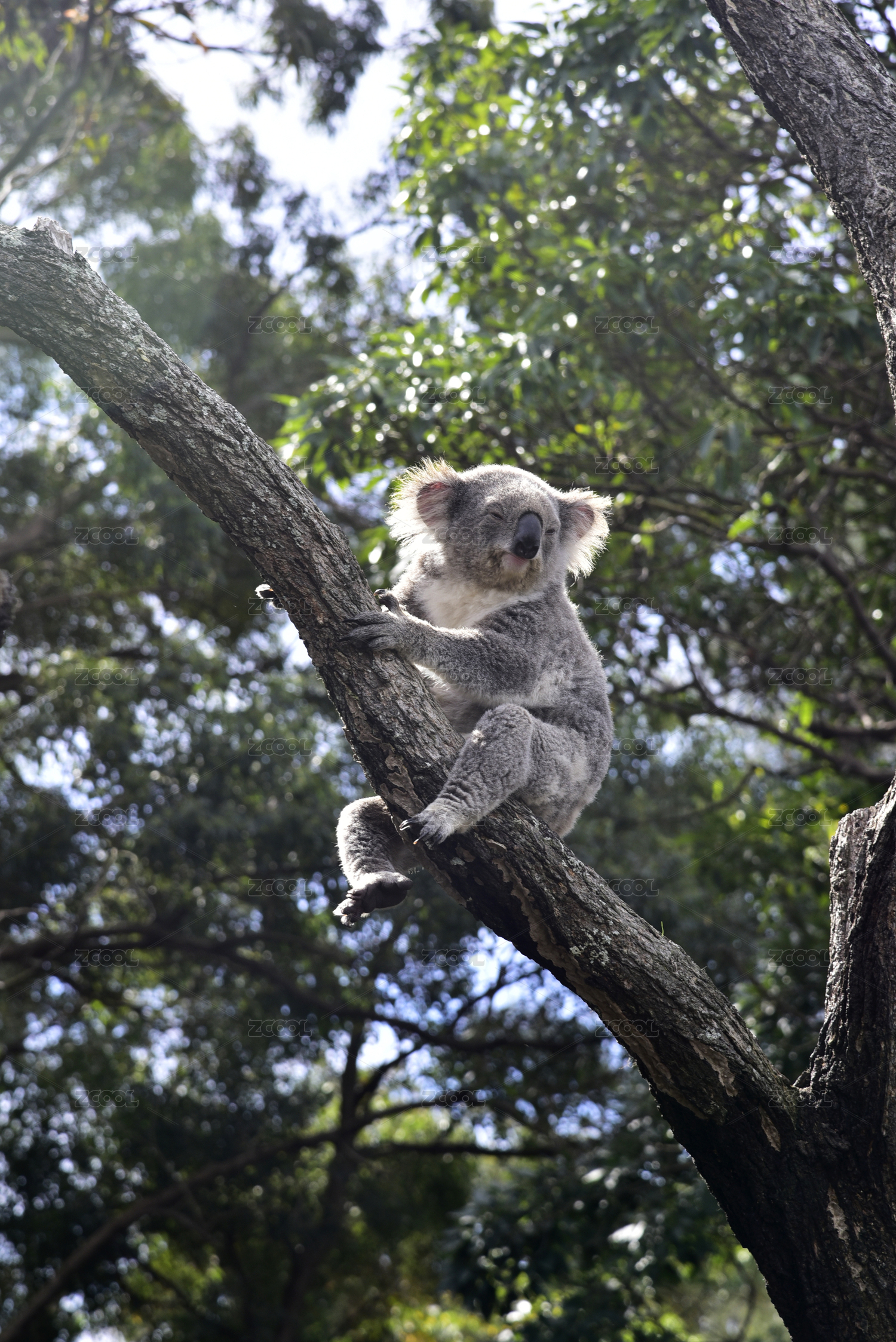 澳大利亚悉尼塔龙加动物园坐在桉树上的考拉