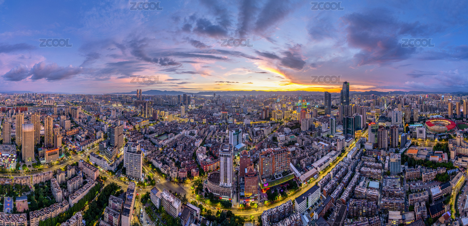 广州番禺城市夕阳晚霞全景风光航拍长图