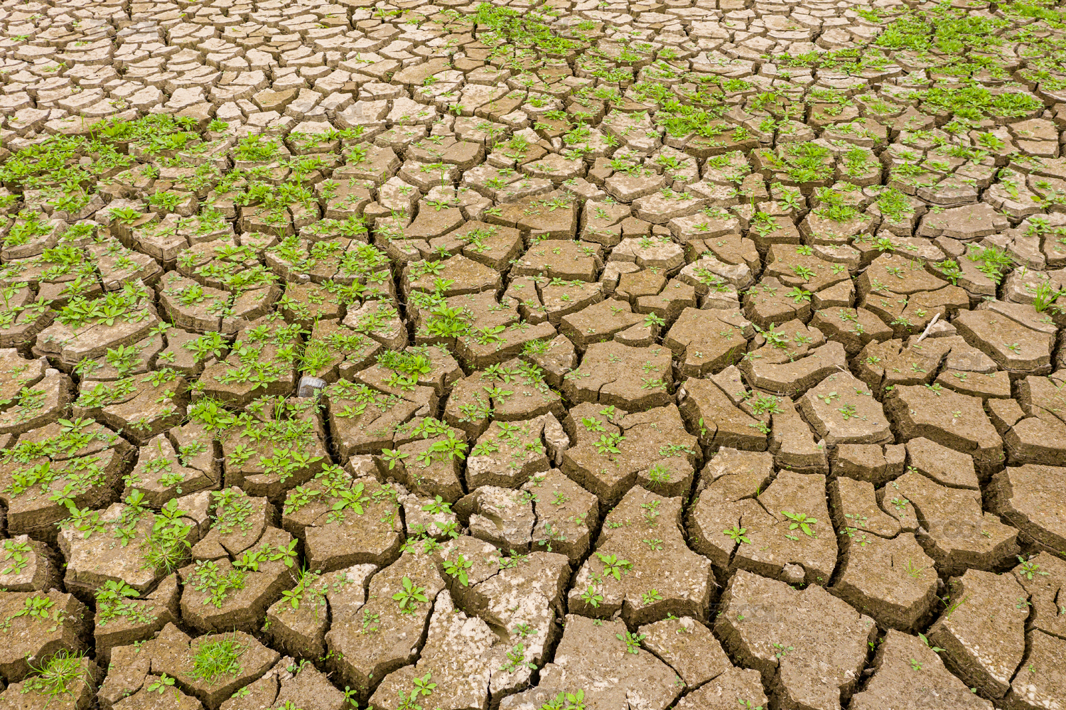 干裂土壤上的新生小草