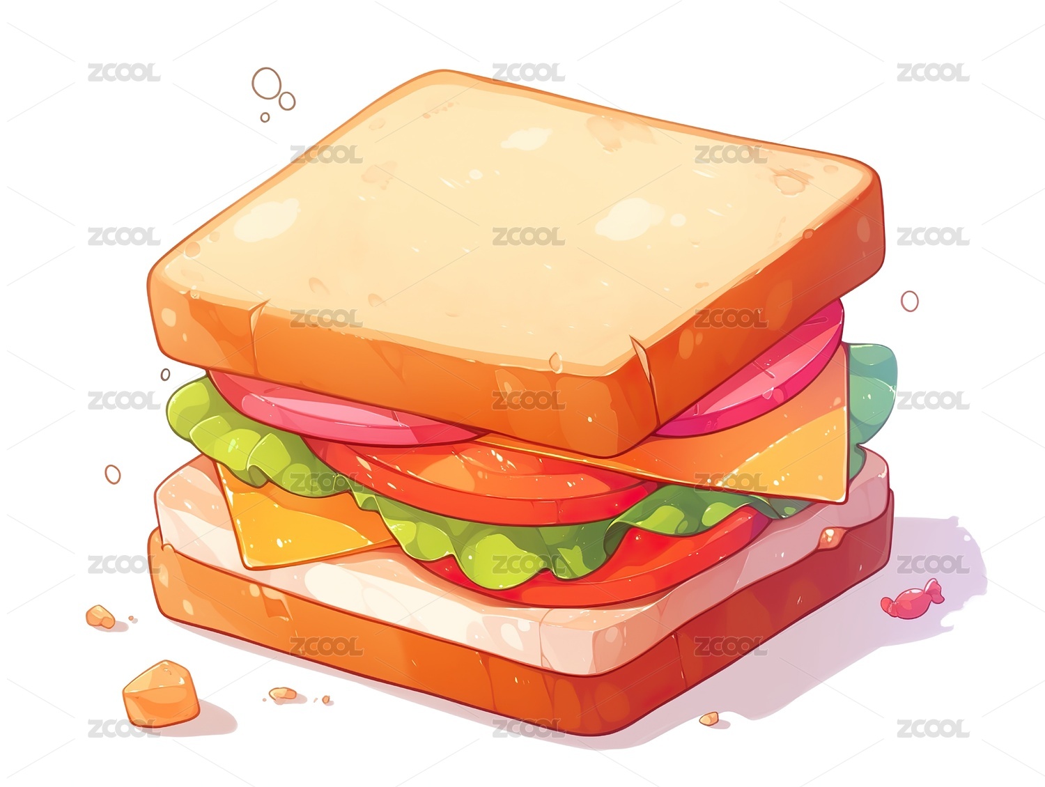 卡通,食品,面包,培根,鸡蛋,三明治,小吃,免扣,美食