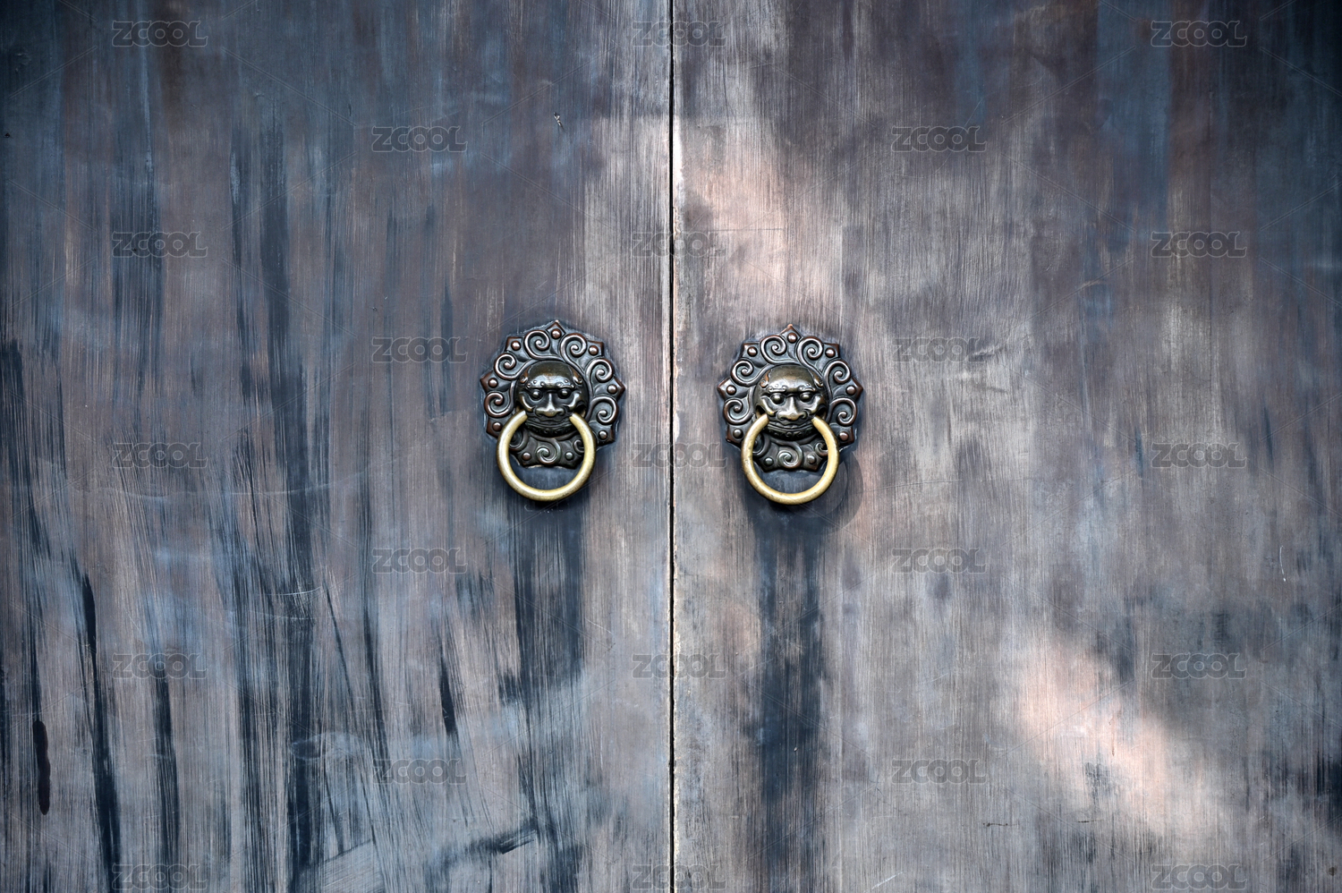 老门,古代,门敲门人,门环,铜环,中国,古老,木头原色,铁质门环,沒有人