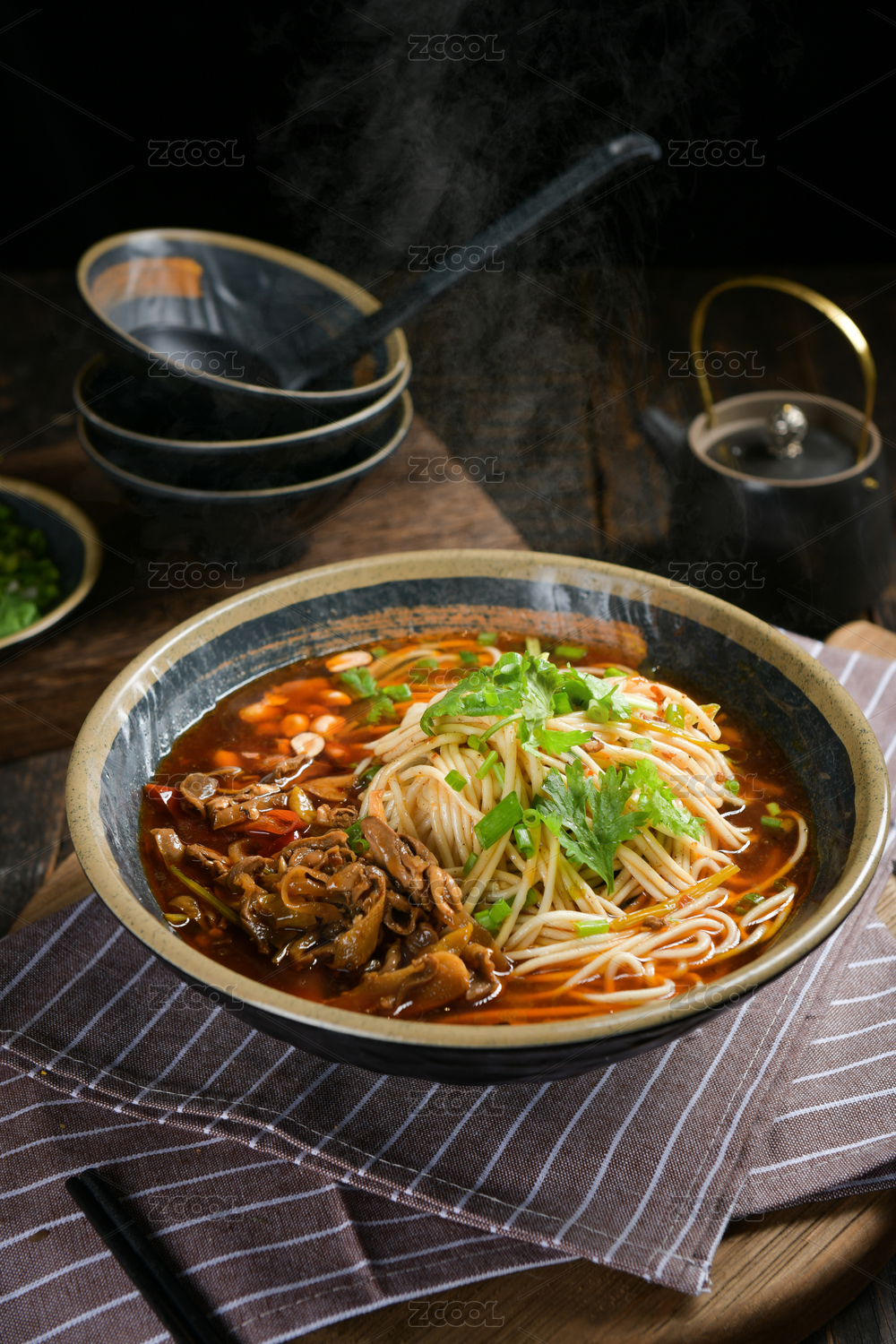青花瓷大碗里的麻辣牛肉面重庆小面
