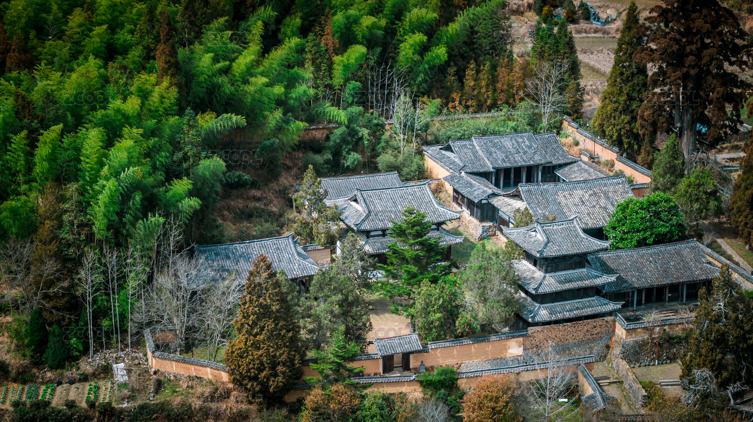 中国云南红河弥勒锦屏山弥勒寺龙华宝塔航拍