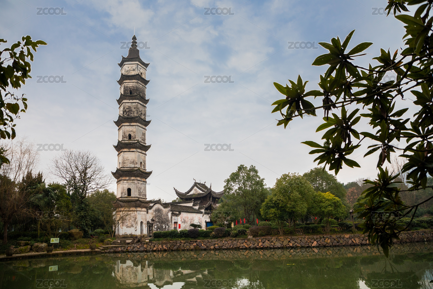 安徽,歙县,古塔,春色,春天,植被,树,山,公园,古建筑