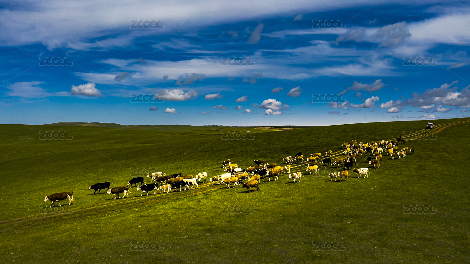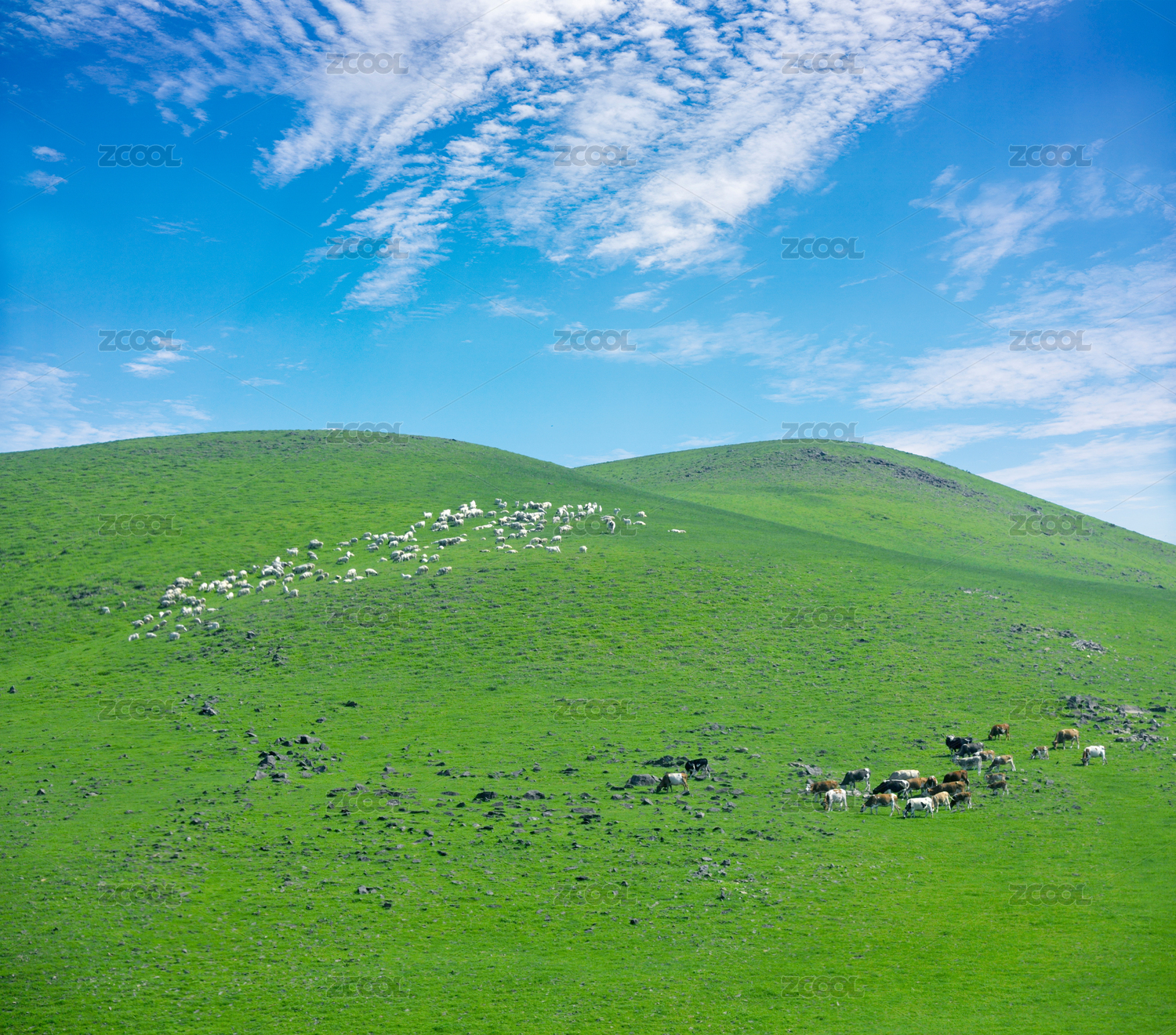 中国,国内,内蒙古,旅行,草原,蓝天,白云,山丘,羊群,放羊