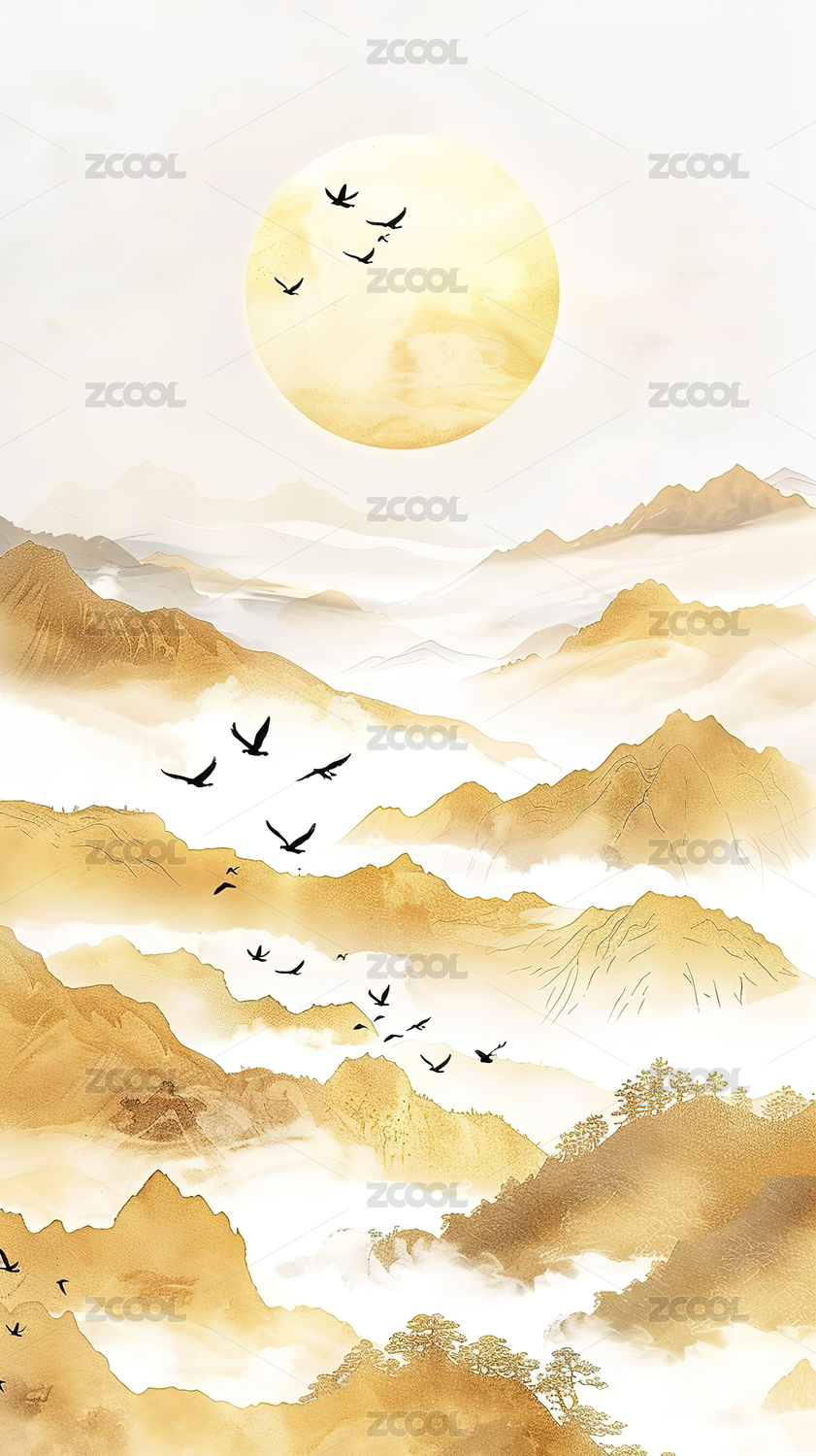 国潮山水插画