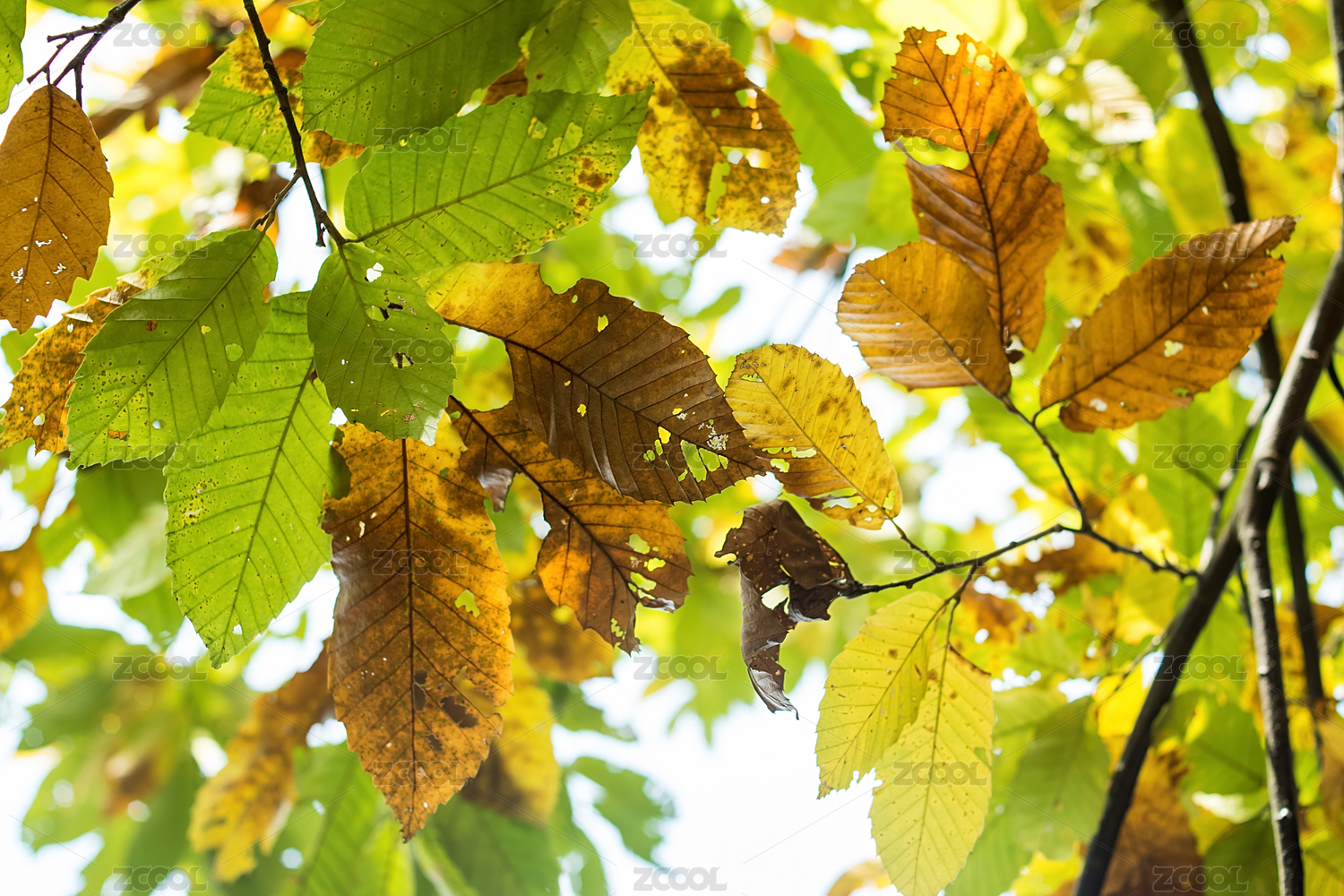 板栗树,树叶,叶子,金色,黄色,金黄色,秋天,秋季,深秋,温暖