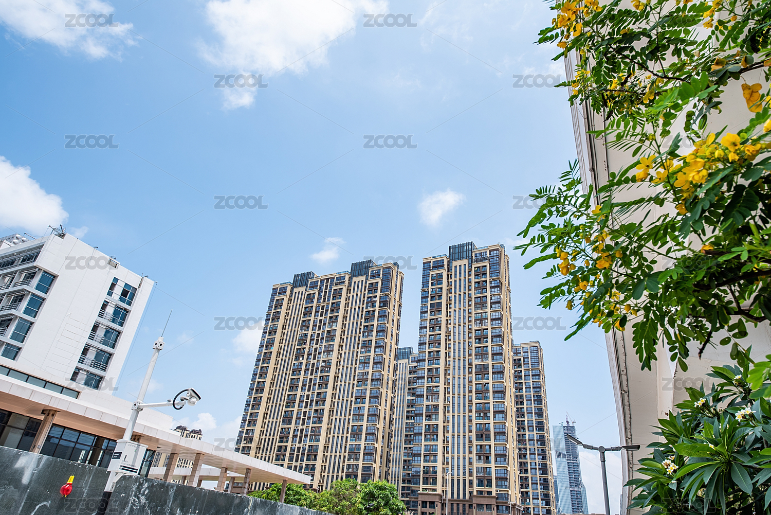 蓝天白云下环境优美的房地产小区楼盘 中国广东珠海市