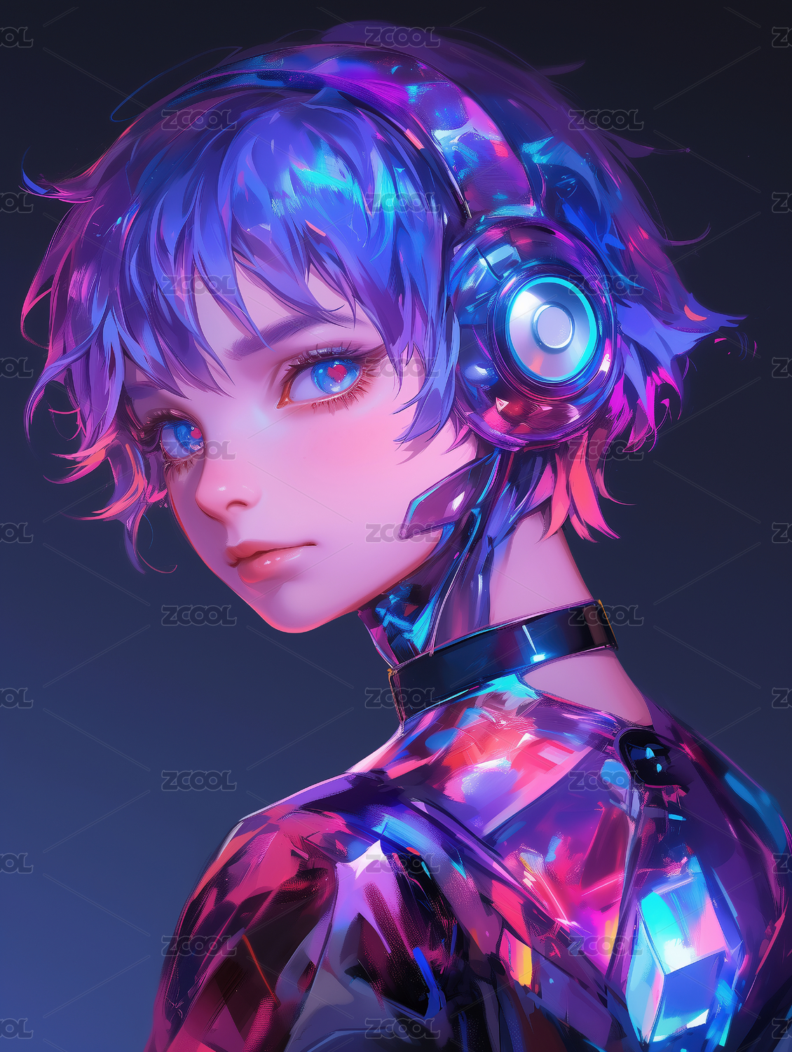 赛博朋克风格人物 戴耳机的机械少女