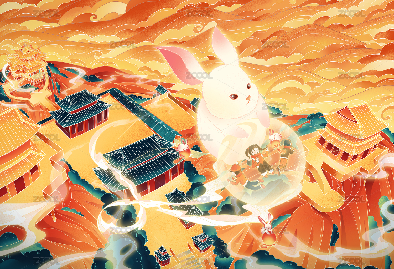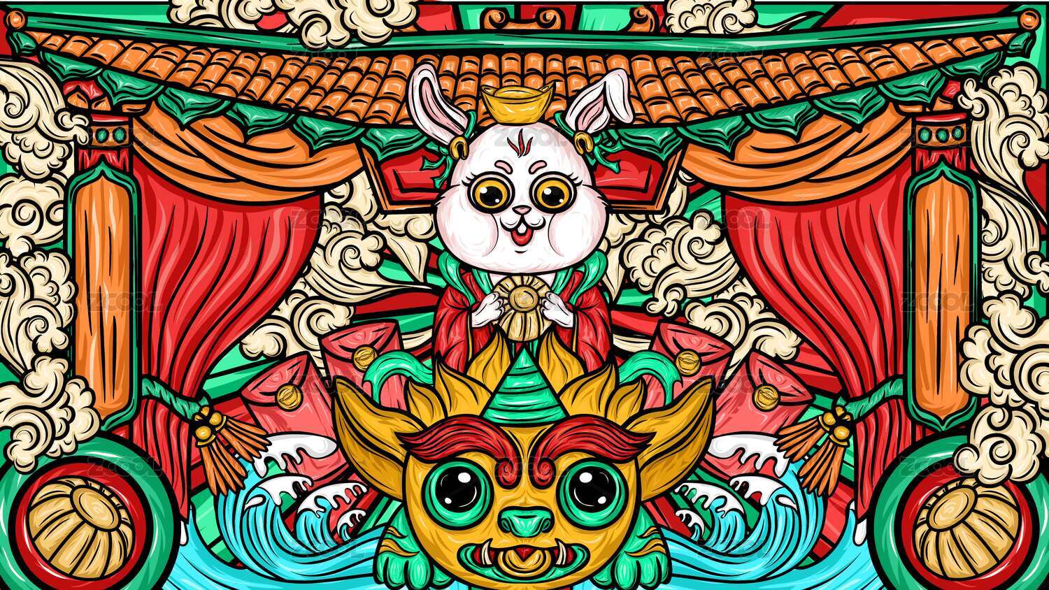 兔年国潮插画
