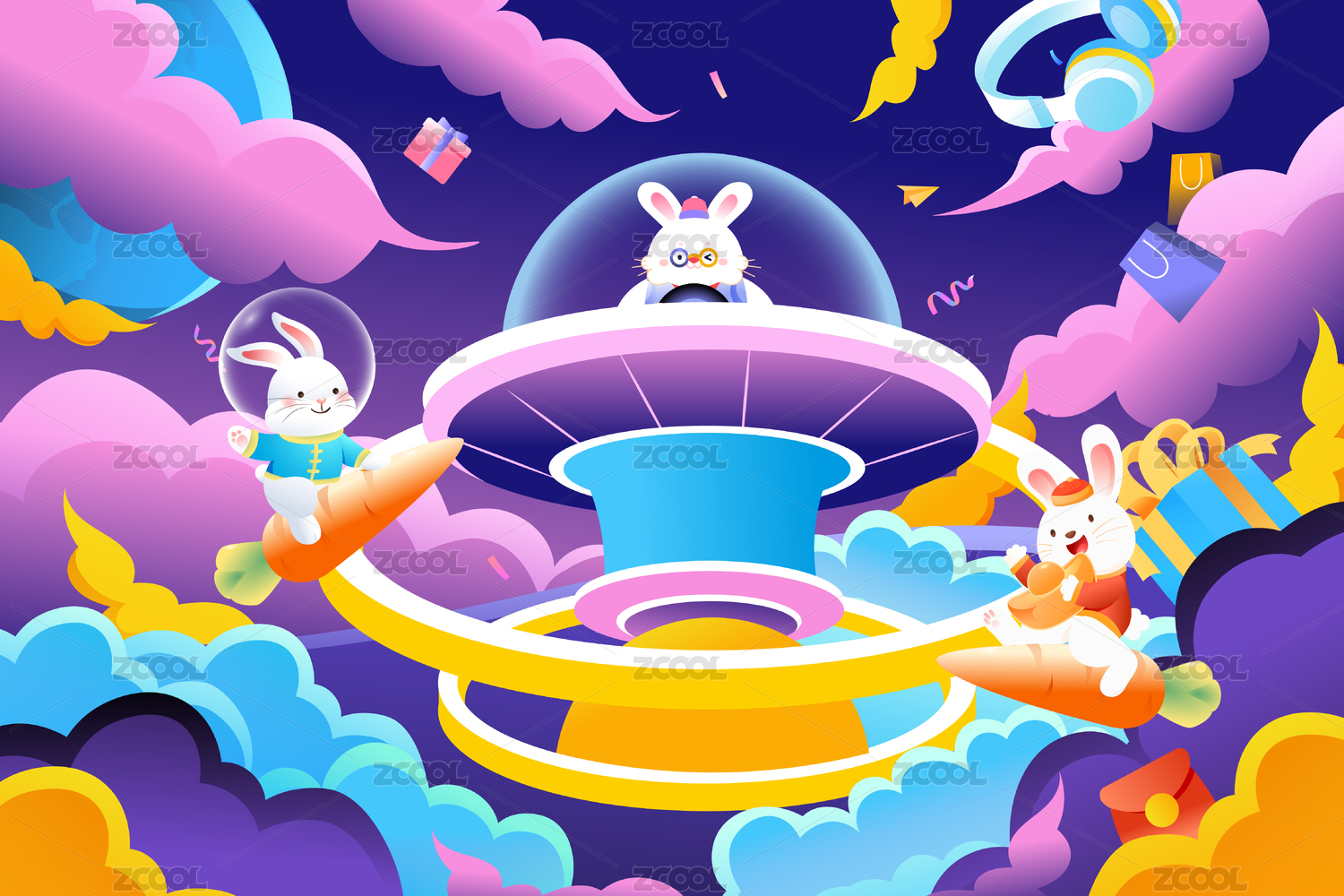 电商兔年矢量插画
