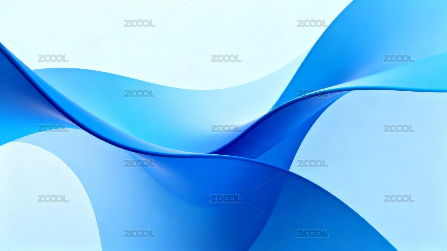 蓝色背景下白色飘带蜿蜒呈现简约治愈的视觉