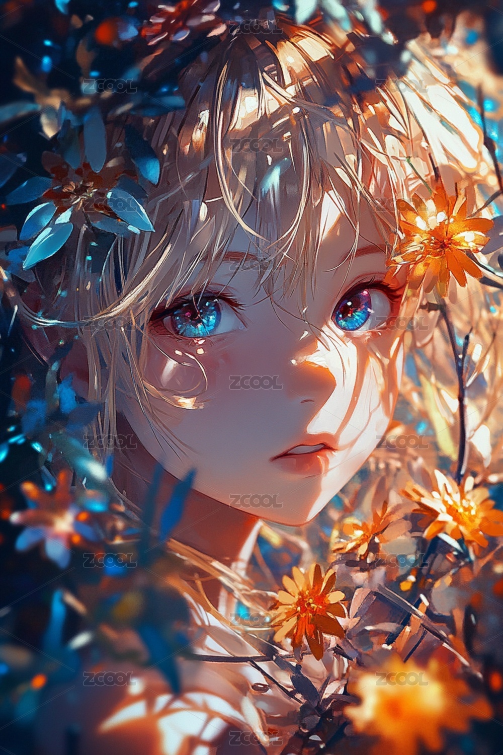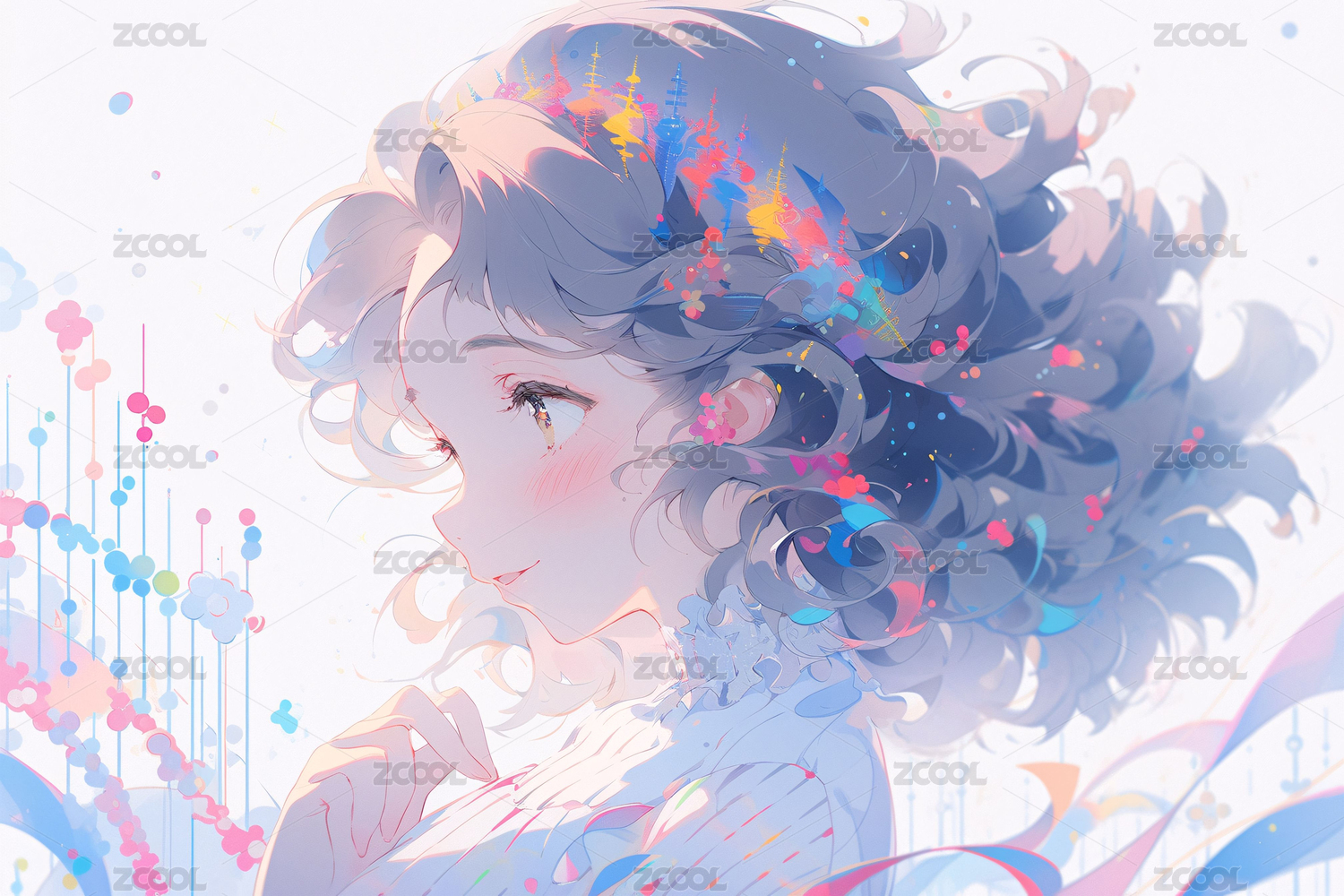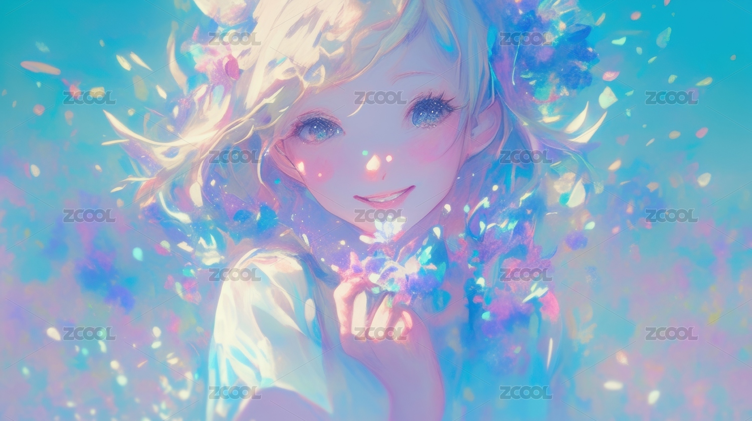 可爱的动漫女孩缤纷的色彩壁纸背景