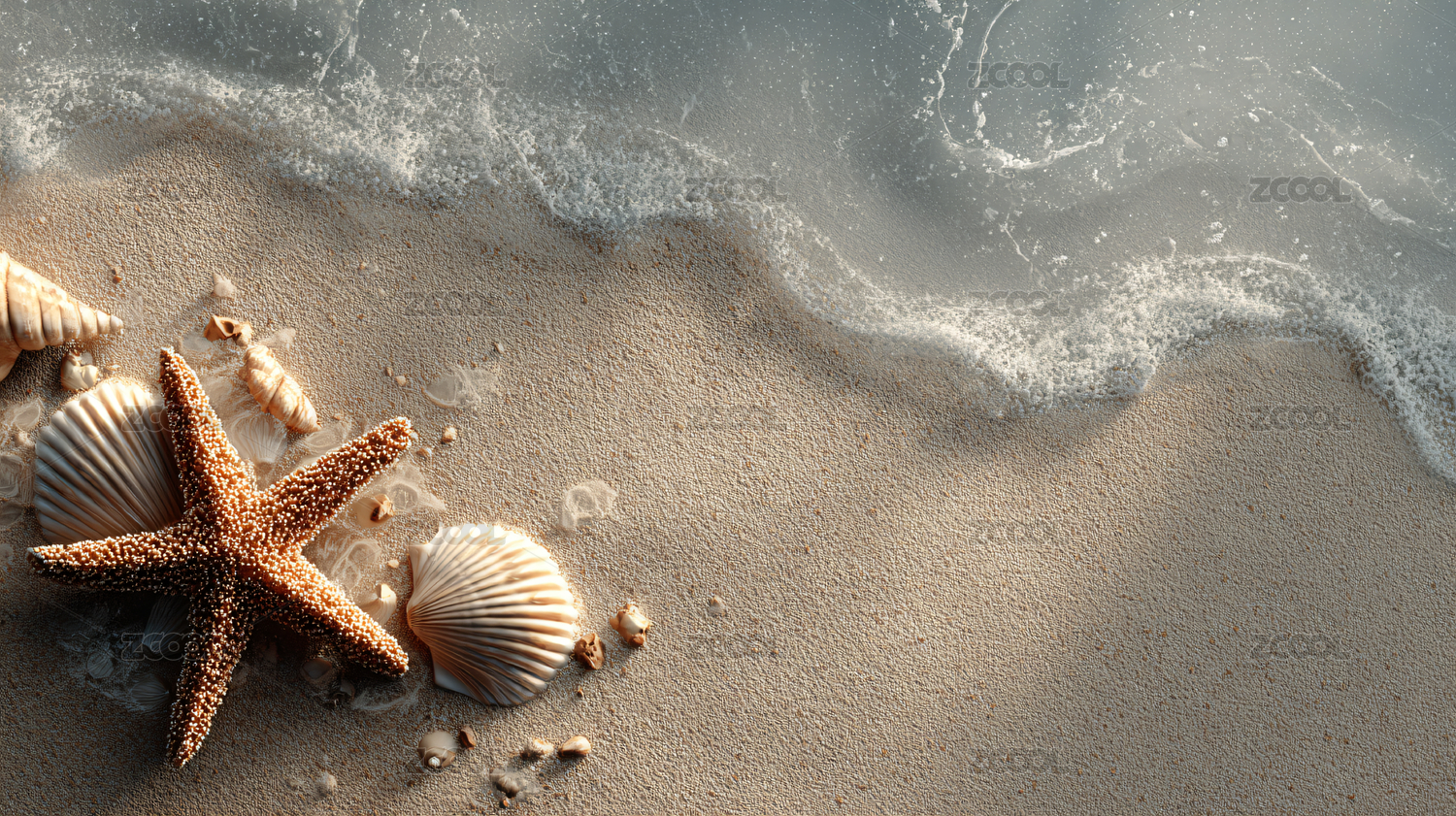 海边,沙滩,海水,贝壳,海螺,海星,海面,岸边,海岸,旅游