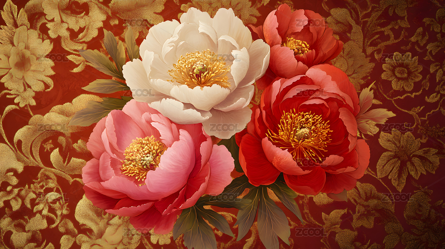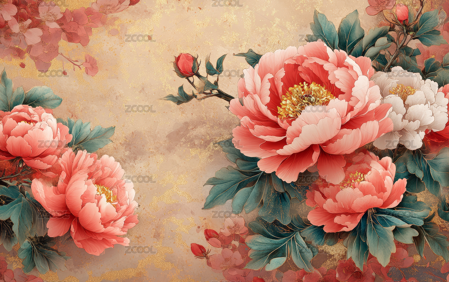 国风富贵牡丹图案