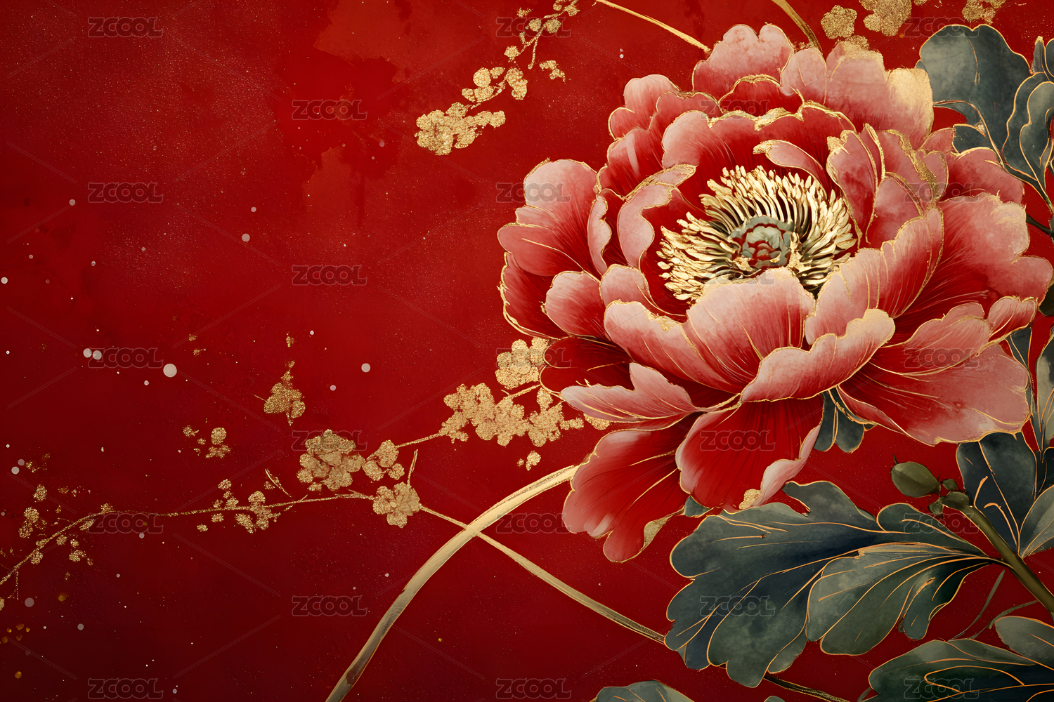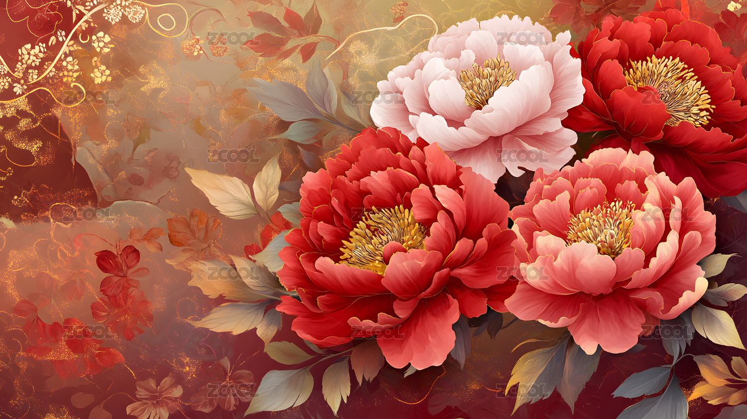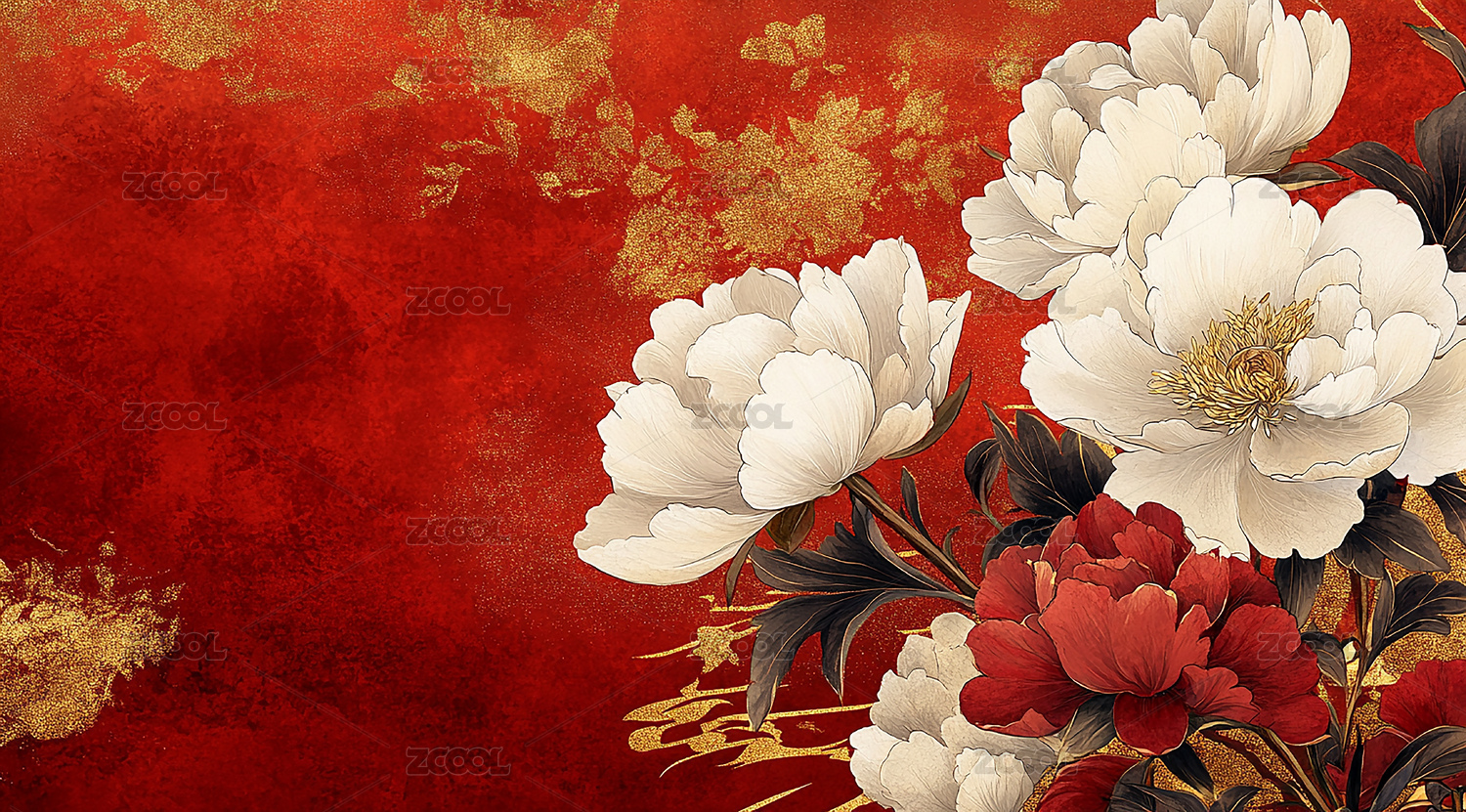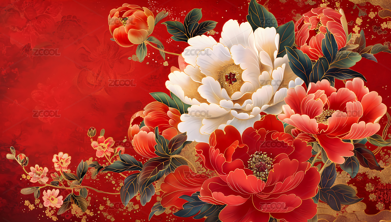 新年节日红色牡丹盛开背景