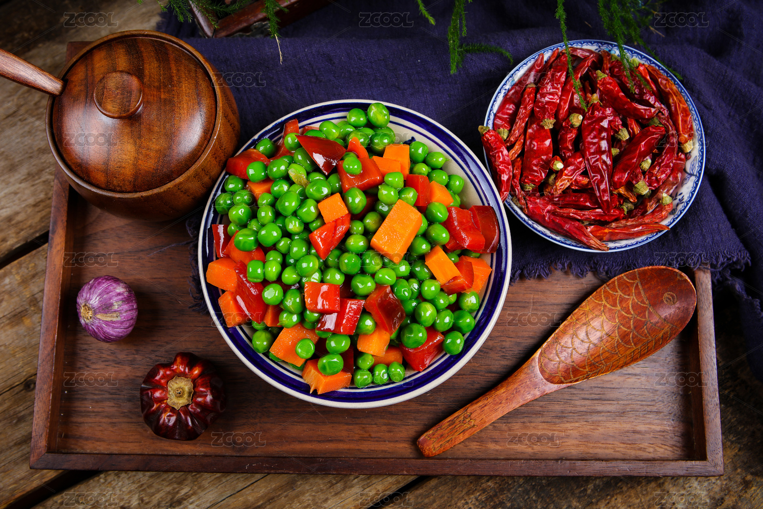 营养健康的素菜美食胡萝卜丁炒豌豆粒