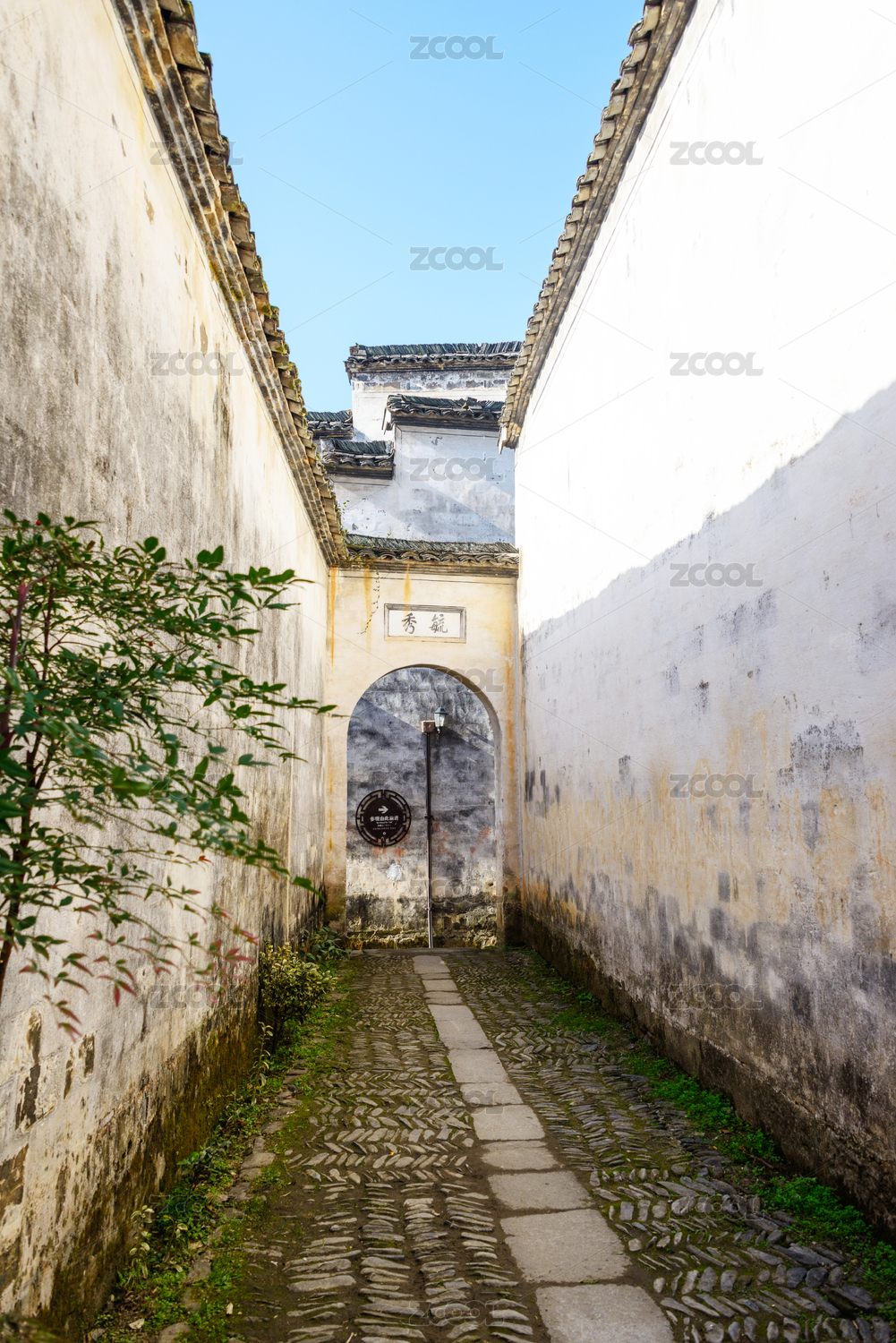 徽派民居小巷,中国安徽黟县卢村木雕楼景区