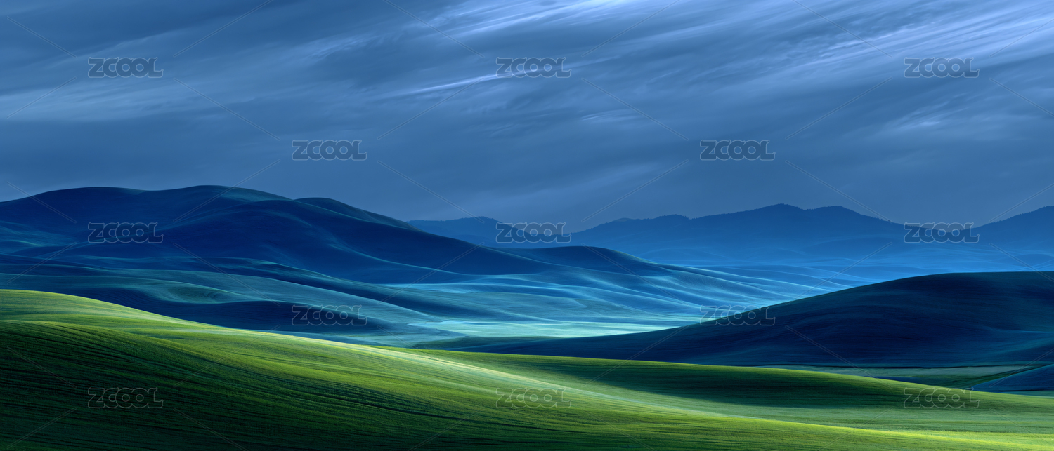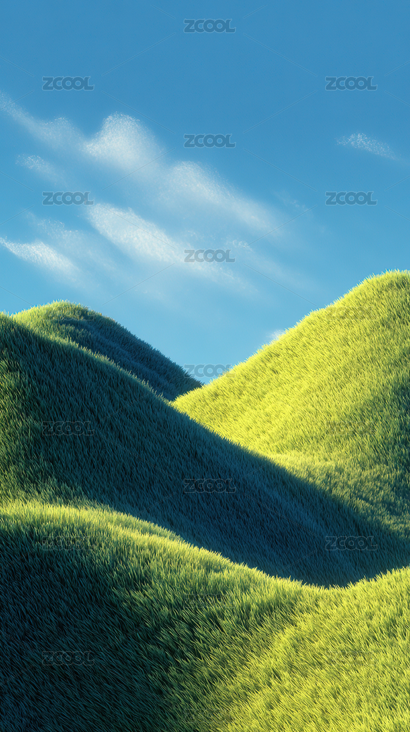 绿色草地草原起伏山丘天空自然风景背景