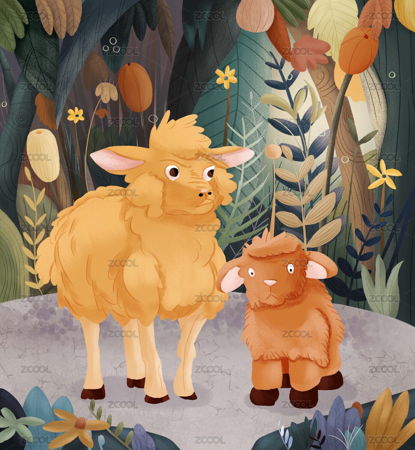十二生肖之牛牛与小肥啾可爱小场景插画