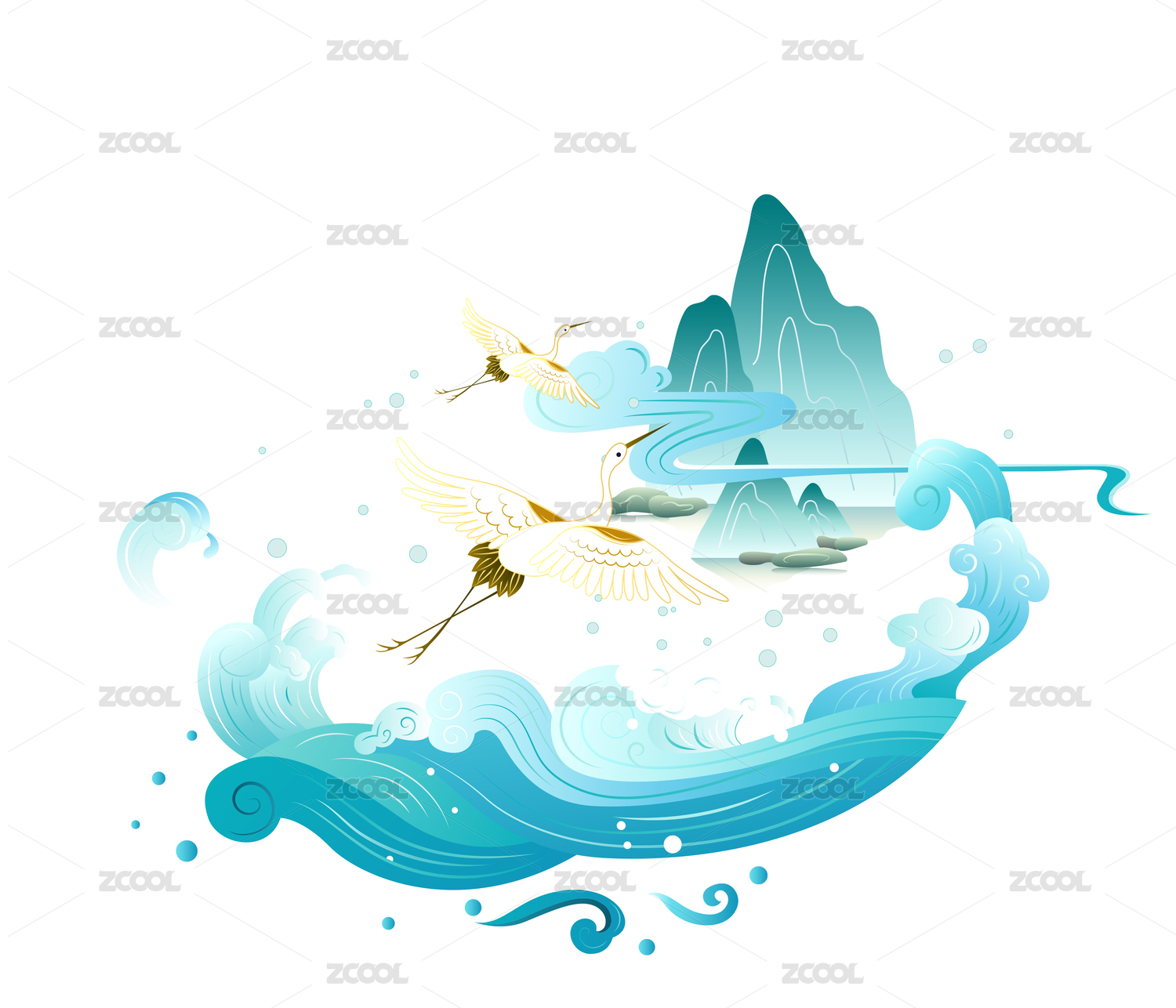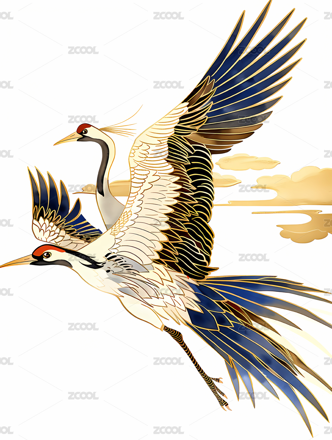 空中飞翔的仙鹤节日节气国潮国风海报设计元
