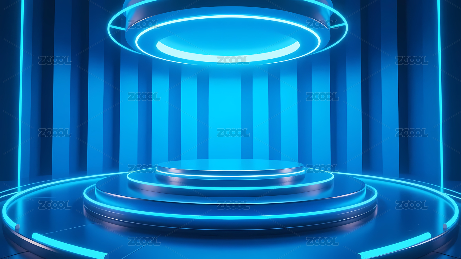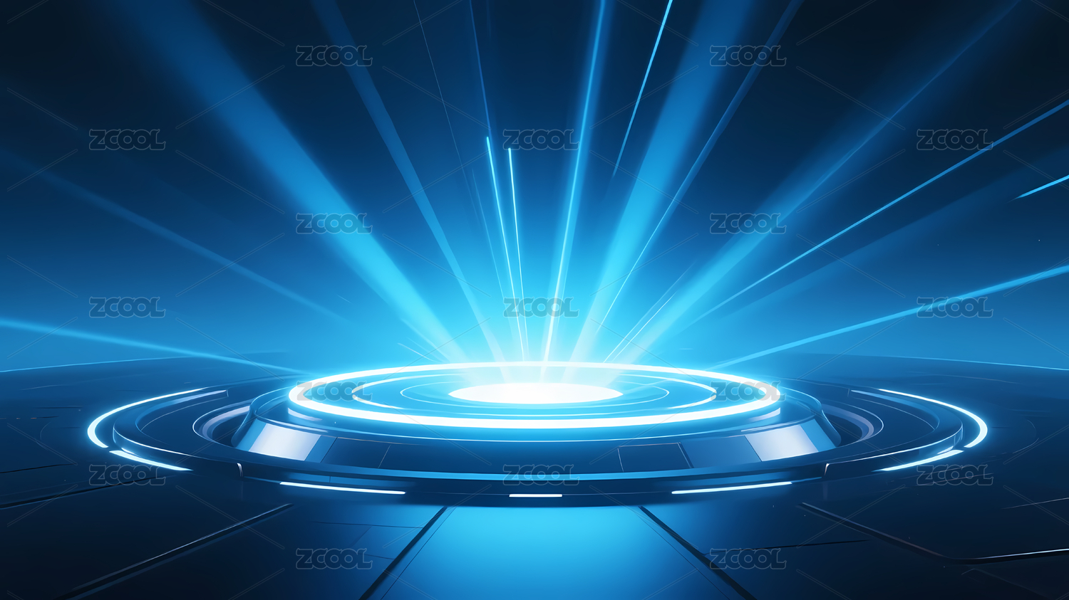 蓝色霓虹灯抽象空场景光束射灯光线概念插图