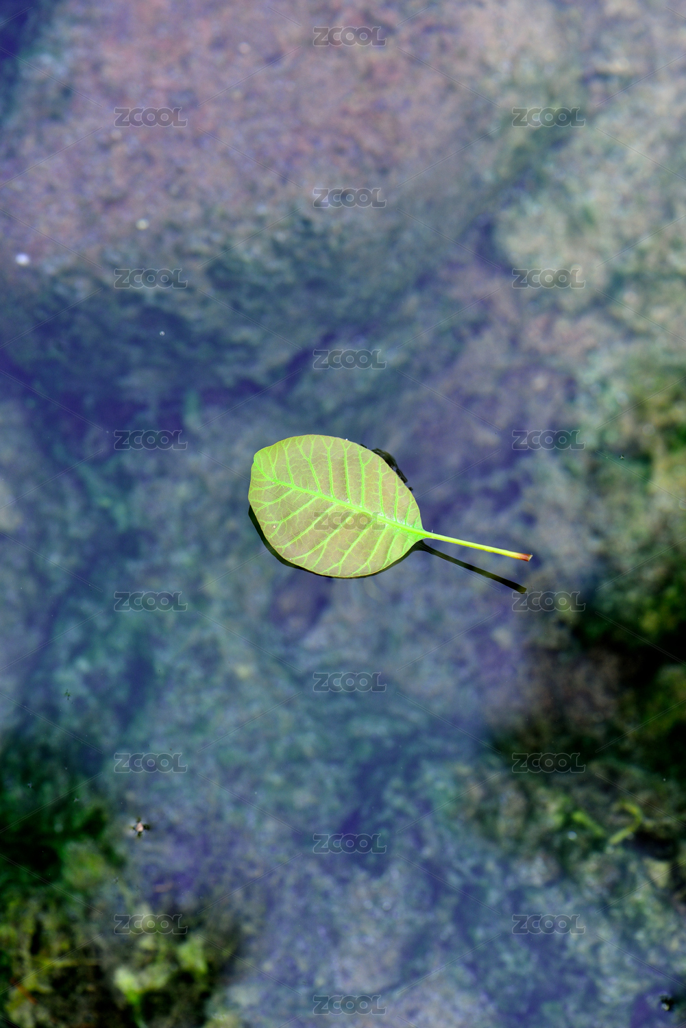 溪水中漂浮的绿叶