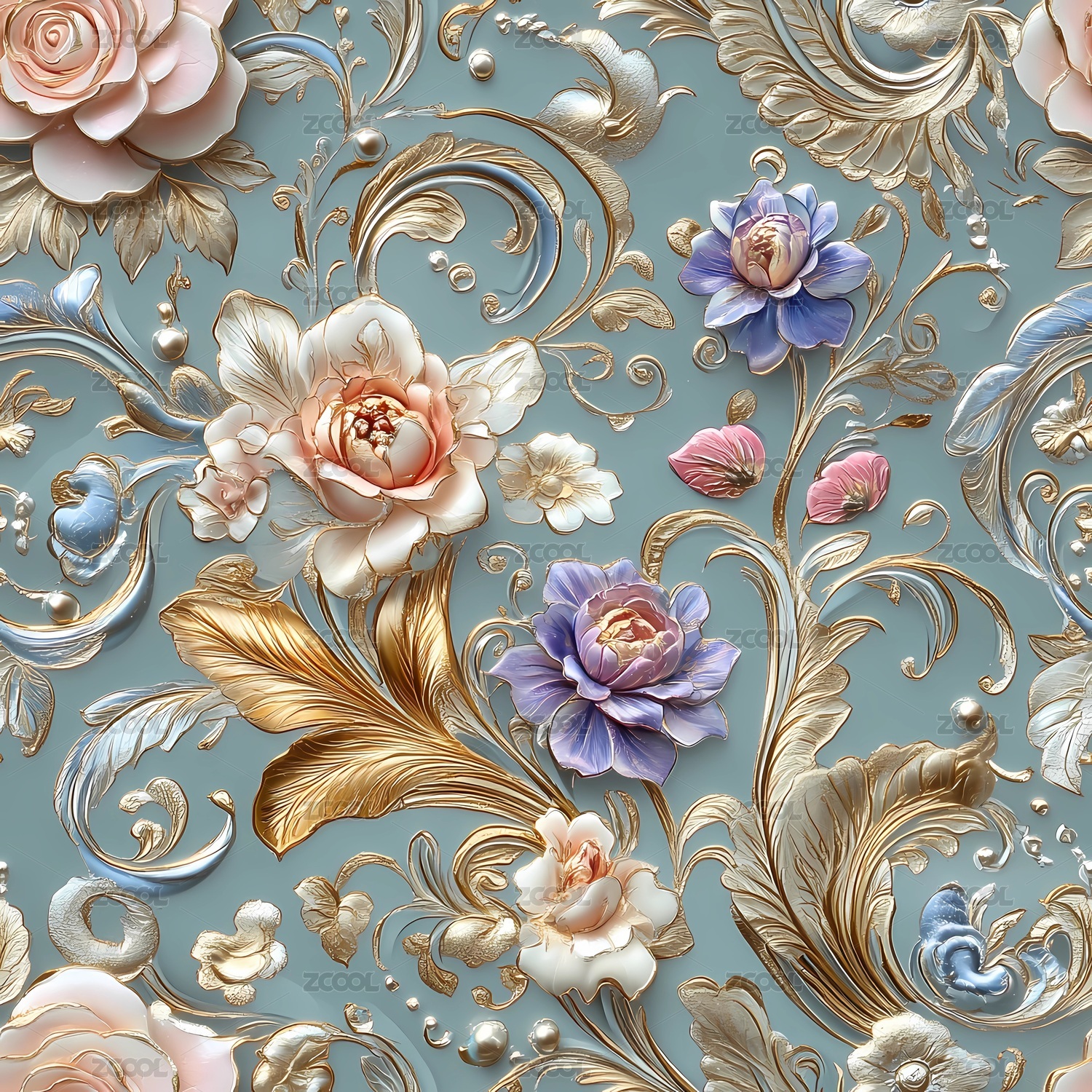 花朵,巴洛克,欧式花朵,无缝,彩色,壁布