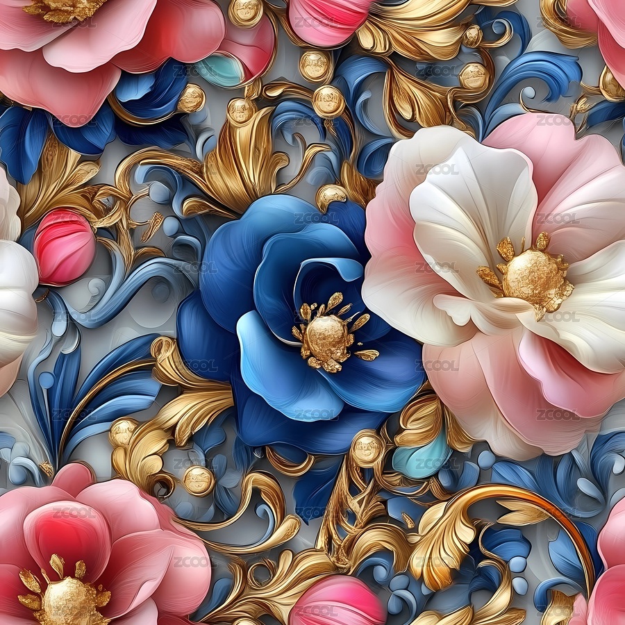 花朵,巴洛克,壁纸,欧式花朵,无缝,彩色,壁布