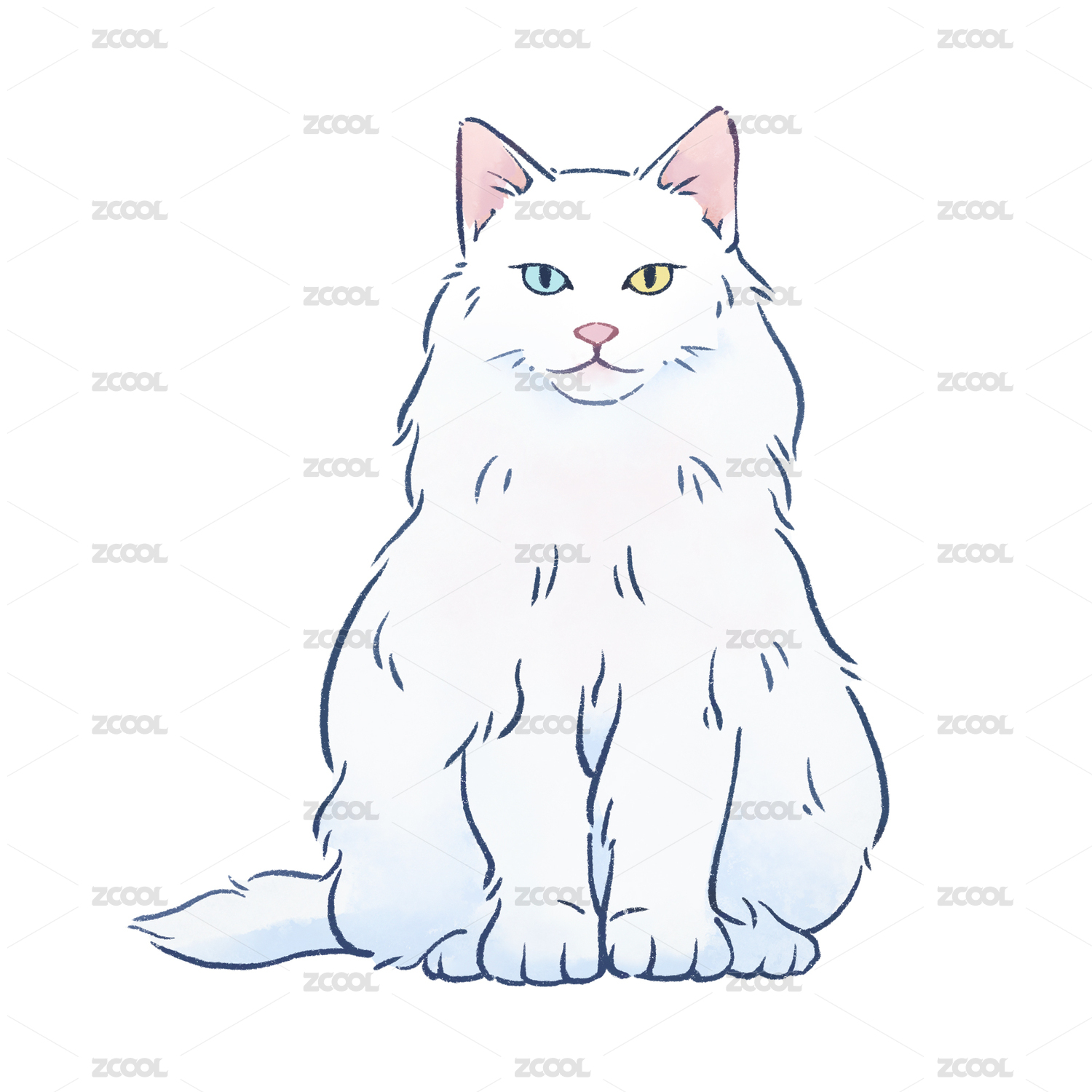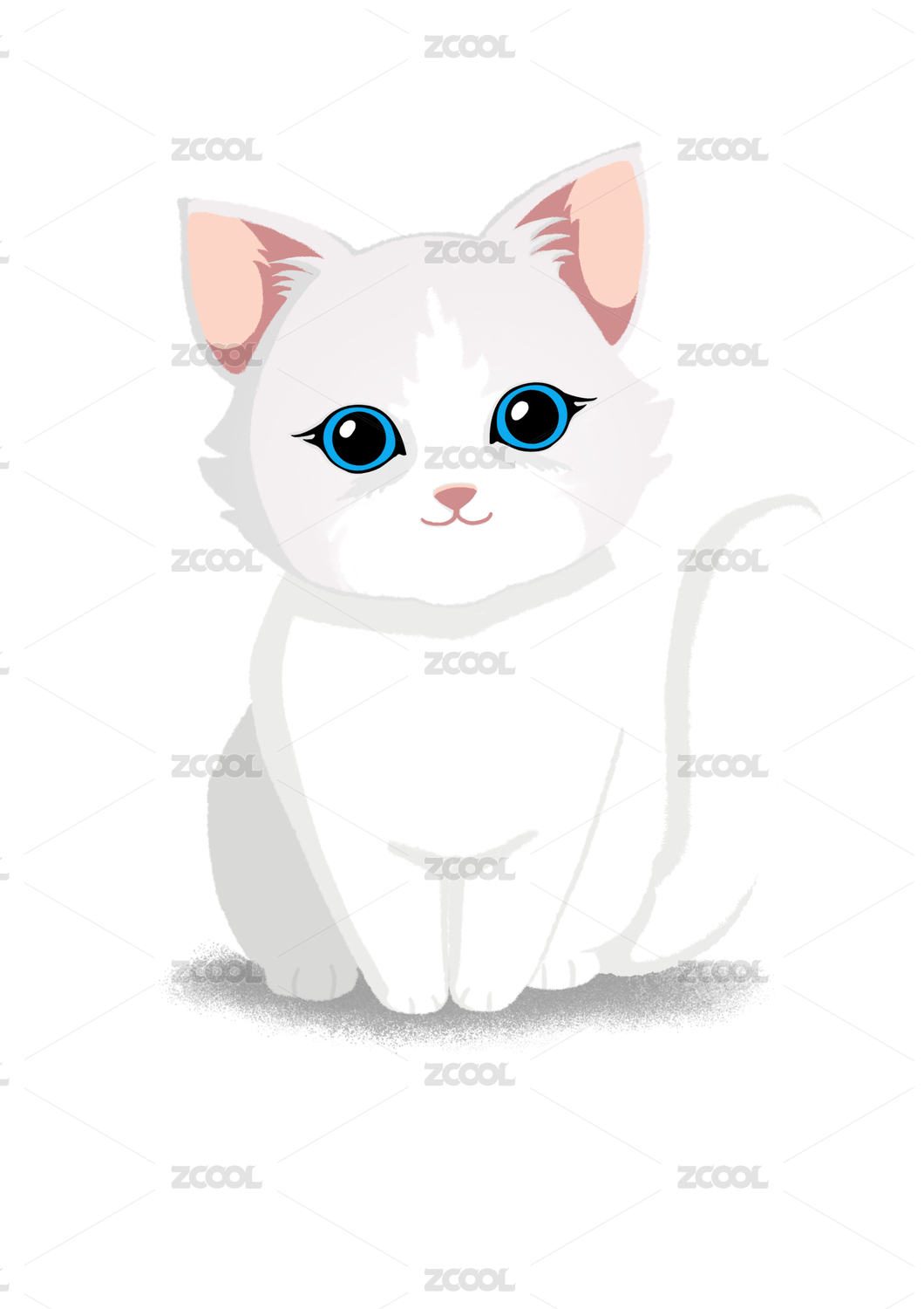 猫咪白色可爱 蓝眼睛粉鼻子布偶坐姿动物猫