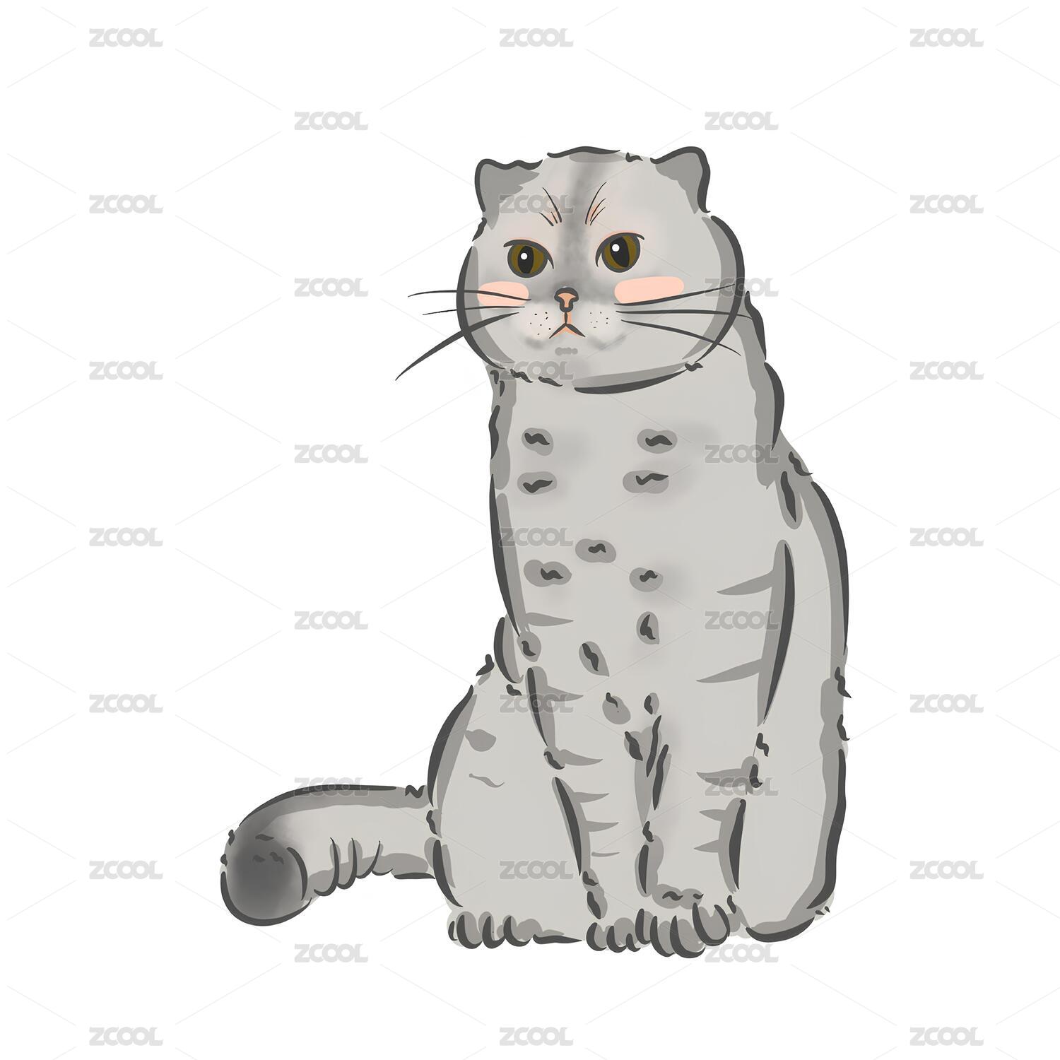 猫猫插画美国短毛猫棕色标准虎斑猫