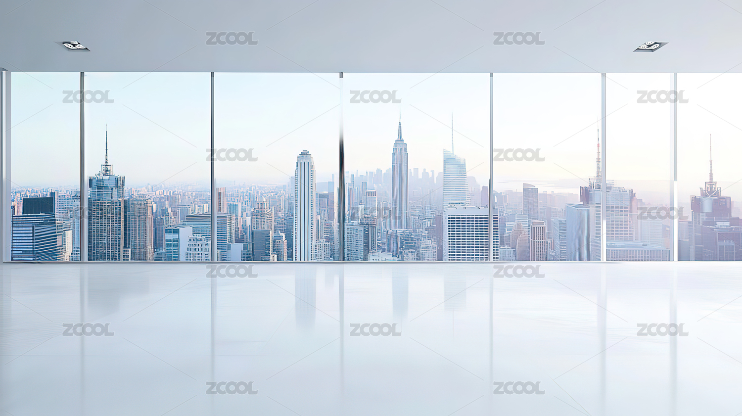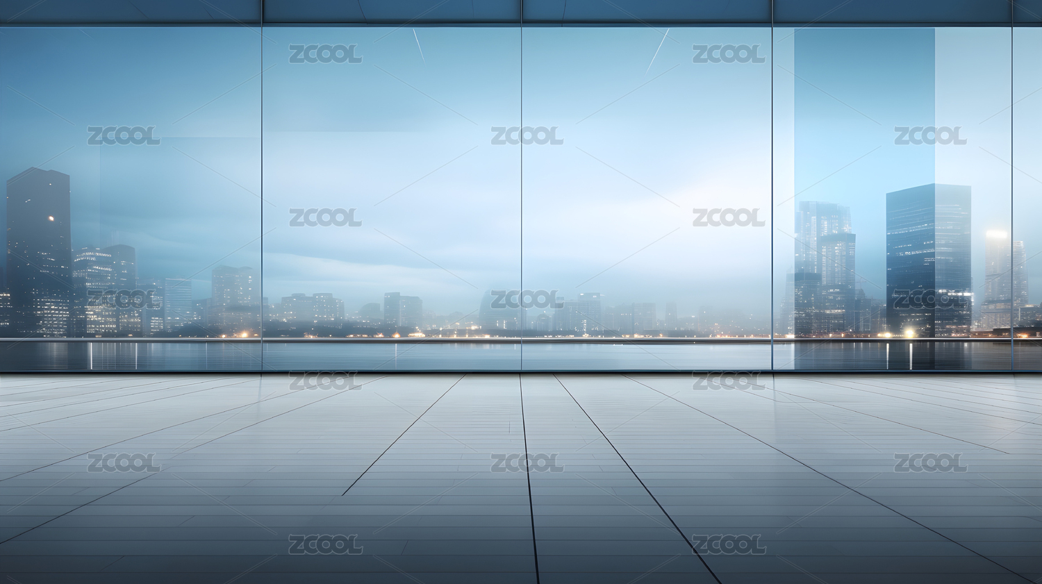 内部空间有巨大落地窗以城市天际线为背景