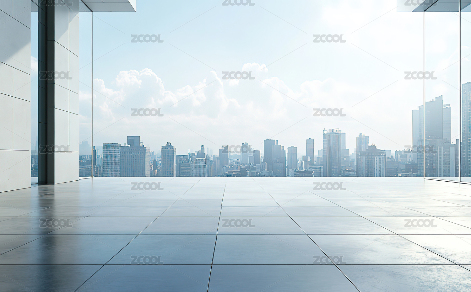 背景是城市天际线的宽阔广场平台