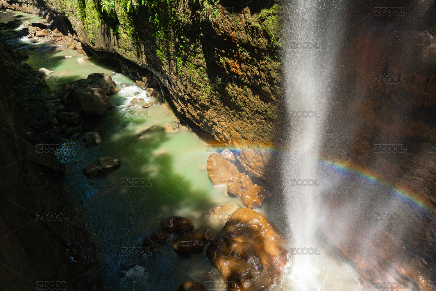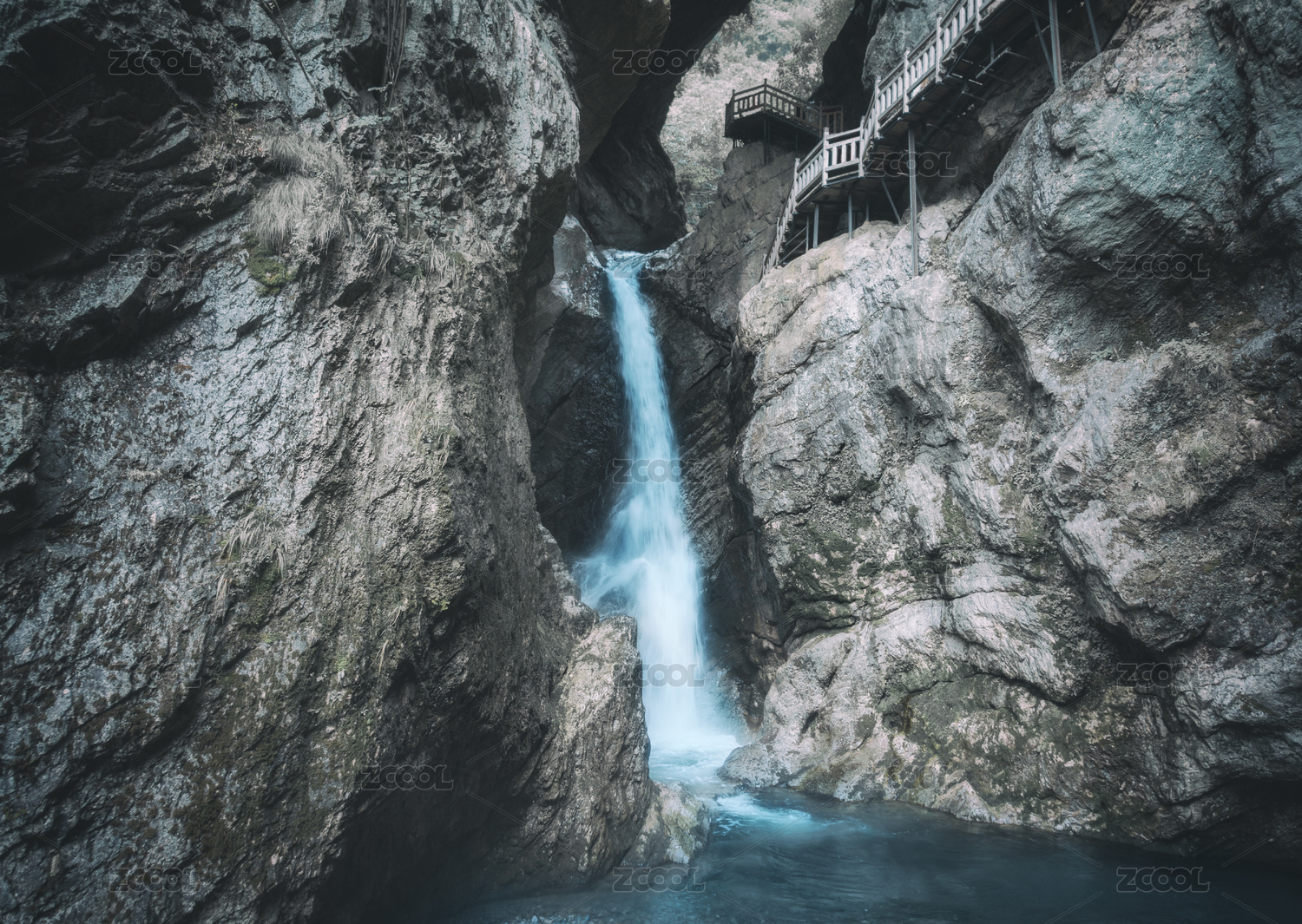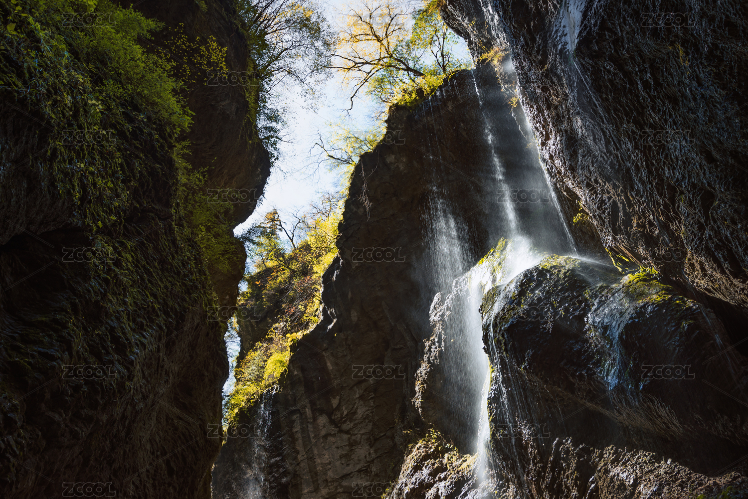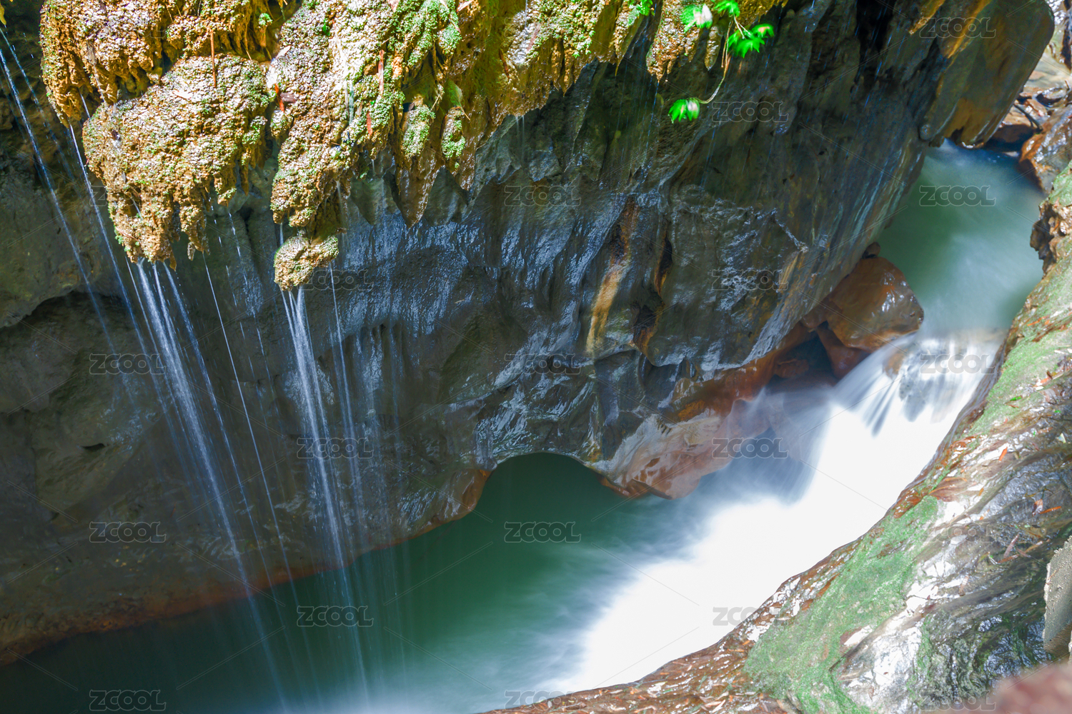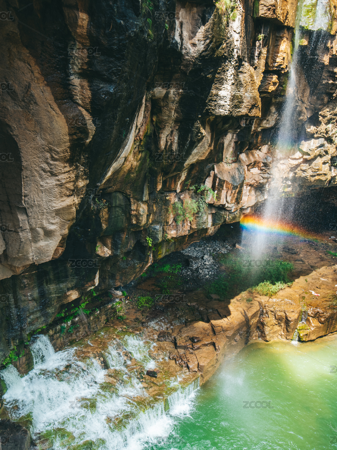 中国贵州贵阳龙里幽静山谷里的清凉瀑布