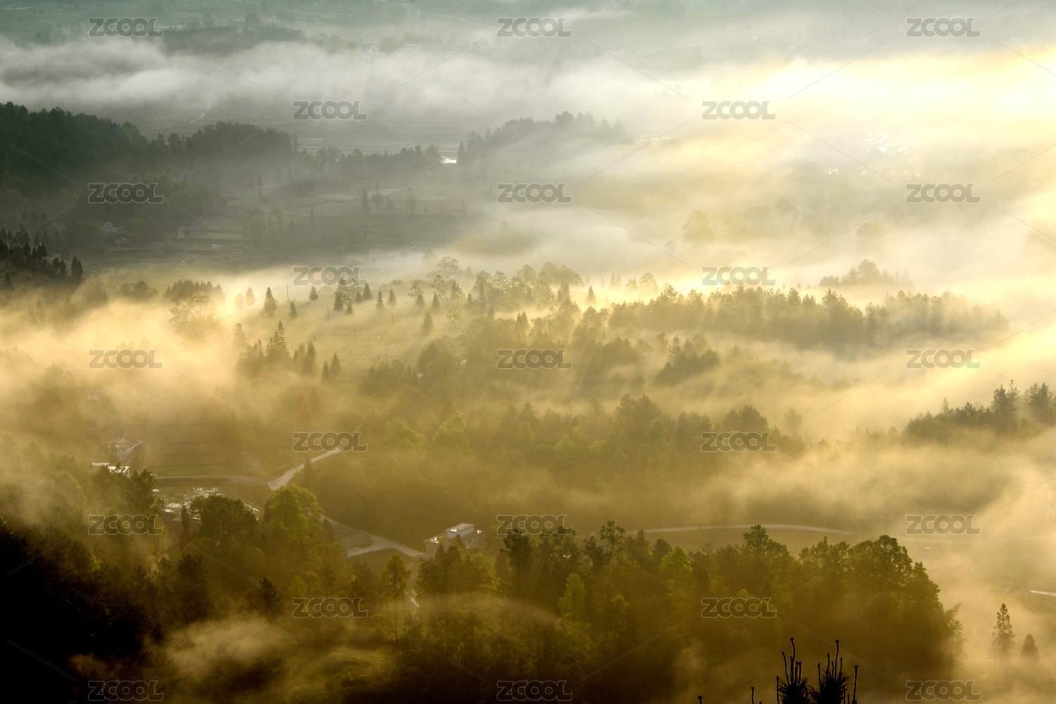 重庆酉阳雾绕彩林伴冬阳